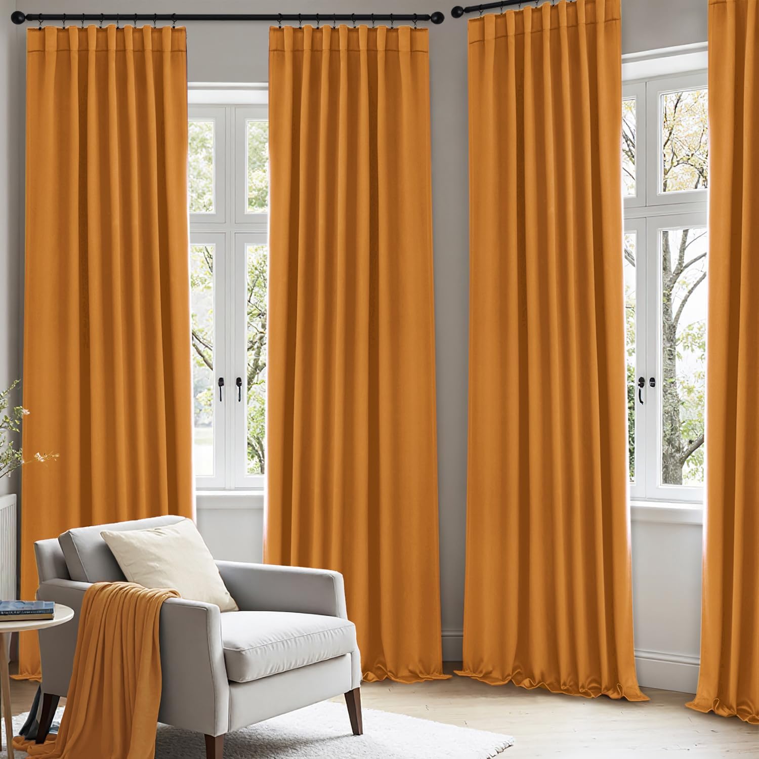 ANRODUO Back Tab Blackout Curtains for Bedroom Living Room, Rod Pocket Pinch Pleated Thermal Insulated Room Darkening Curtains 96 Inches Long 2 Panels, Mustard Yellow, 42 x 96 Inch