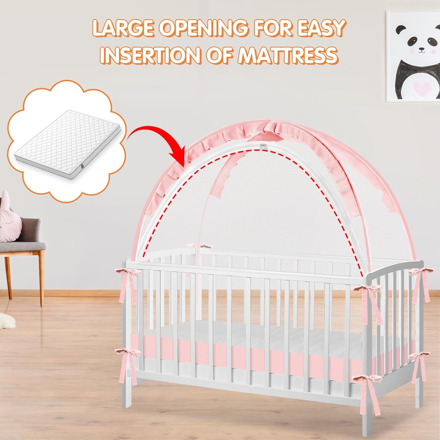 Crib Tent to Keep Baby from Climbing Out - Crib Net to Keep Baby in - Pop Up Breathable Cribs Cover - Canopy with Upgrade Strong Mesh and Durable Zipper (Pink, Lager)