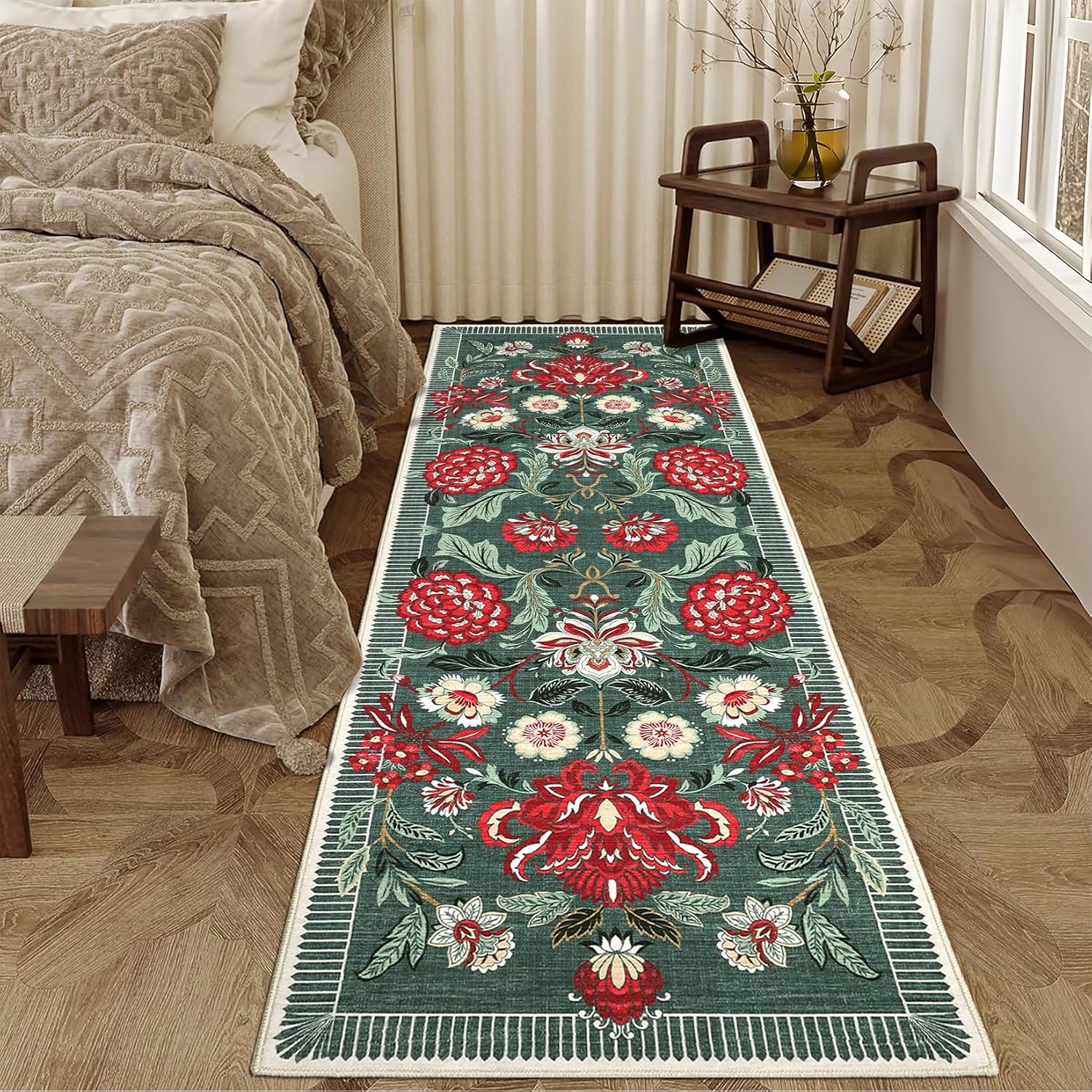 GarveeHome Floral Botanical 2x6 Washable Kitchen Runner Rugs Non Slip Grey Green Vintage Boho Cottage Long Rug for Hallways Bedroom Entryway Bathroom Mat with Rubber Back