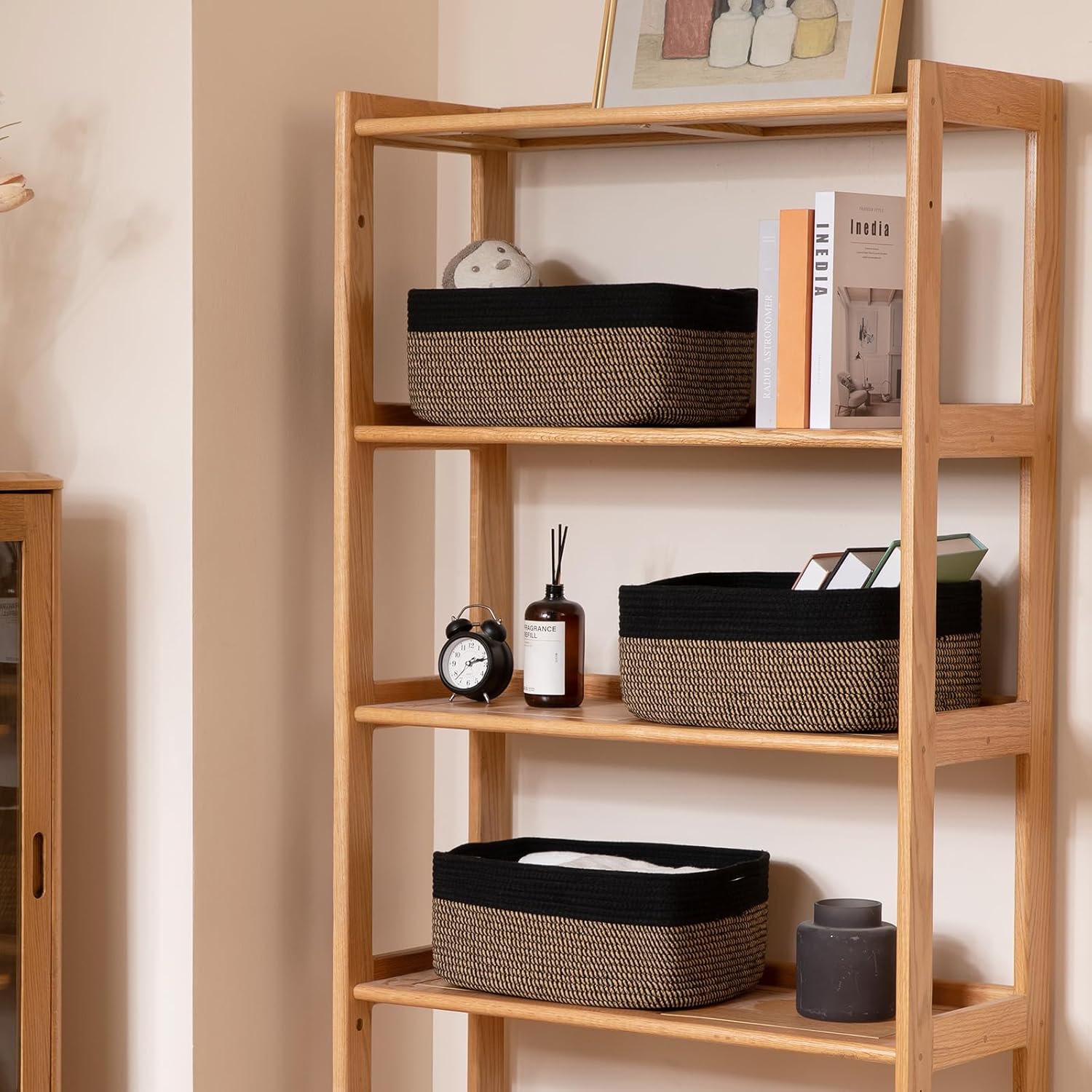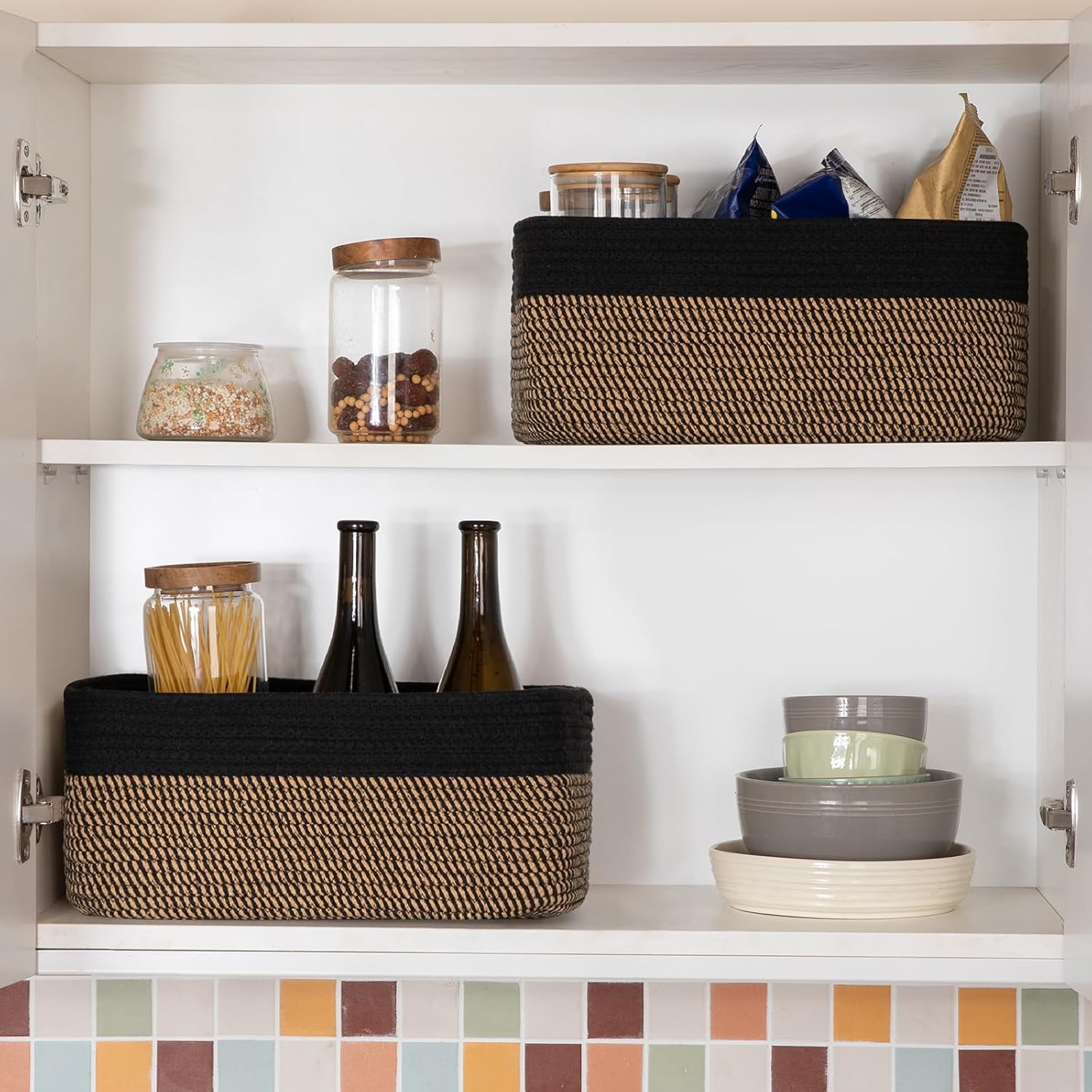 Storage Baskets for Organizing 3 Pack, Woven Baskets for Shelves, Closet Organizer Bins Empty Gift Basket Toy Storage for Toys, Books, Towels, Clothes, 15"x11.42"x6.7", Black & Yellow