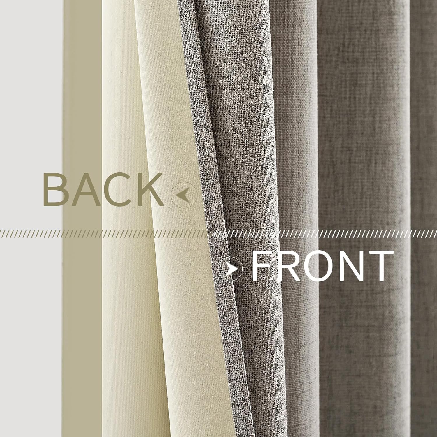 MIULEE Linen Texture Curtains for Bedroom Solid 100% Blackout Thermal Insulated Linen Curtains Grommet Room Darkening Drapes for Living Room Nursery 52x54 Inch (2 Panels)