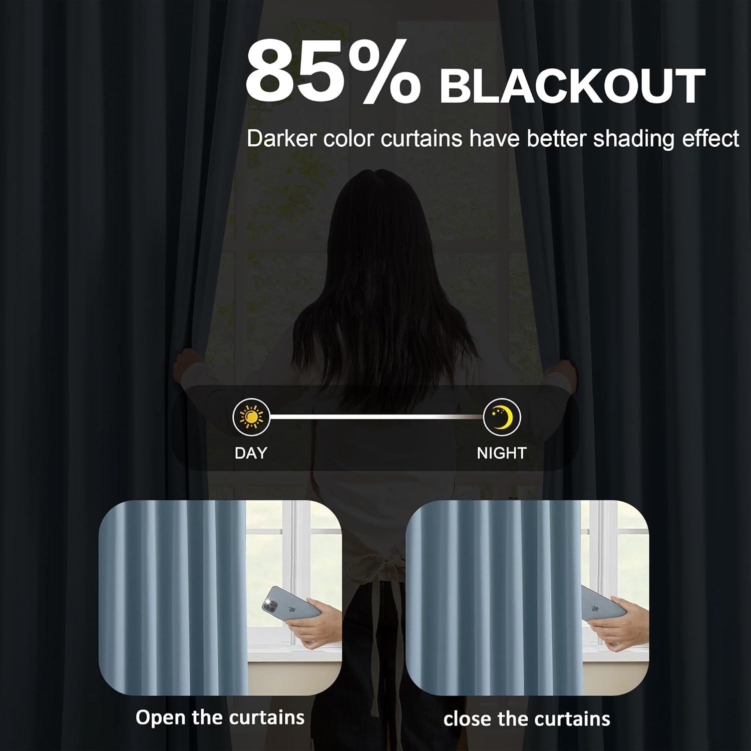 - Room Darkening: Durable polyester fabric without liner. Blackout curtains to impede 85%-95% unwanted light and UV rays(Darker color curtains have better shading effect).