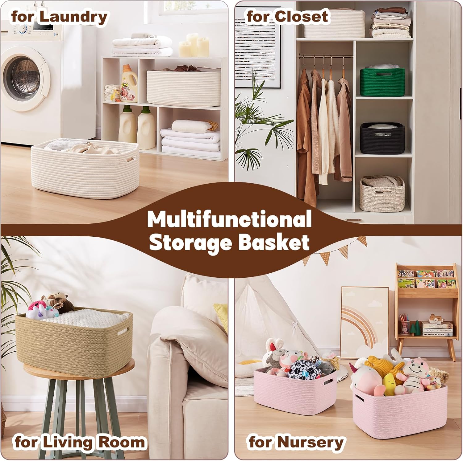 OIAHOMY Storage Basket for Shelves, Closet Cube Storage Bins Baskets for Clothes Blanket Towels, Baby Nursery, Toy Baskets Box, Woven Rope Basket, 17.72*12.99*7.87 IN, 2 Packs Mixed Pink