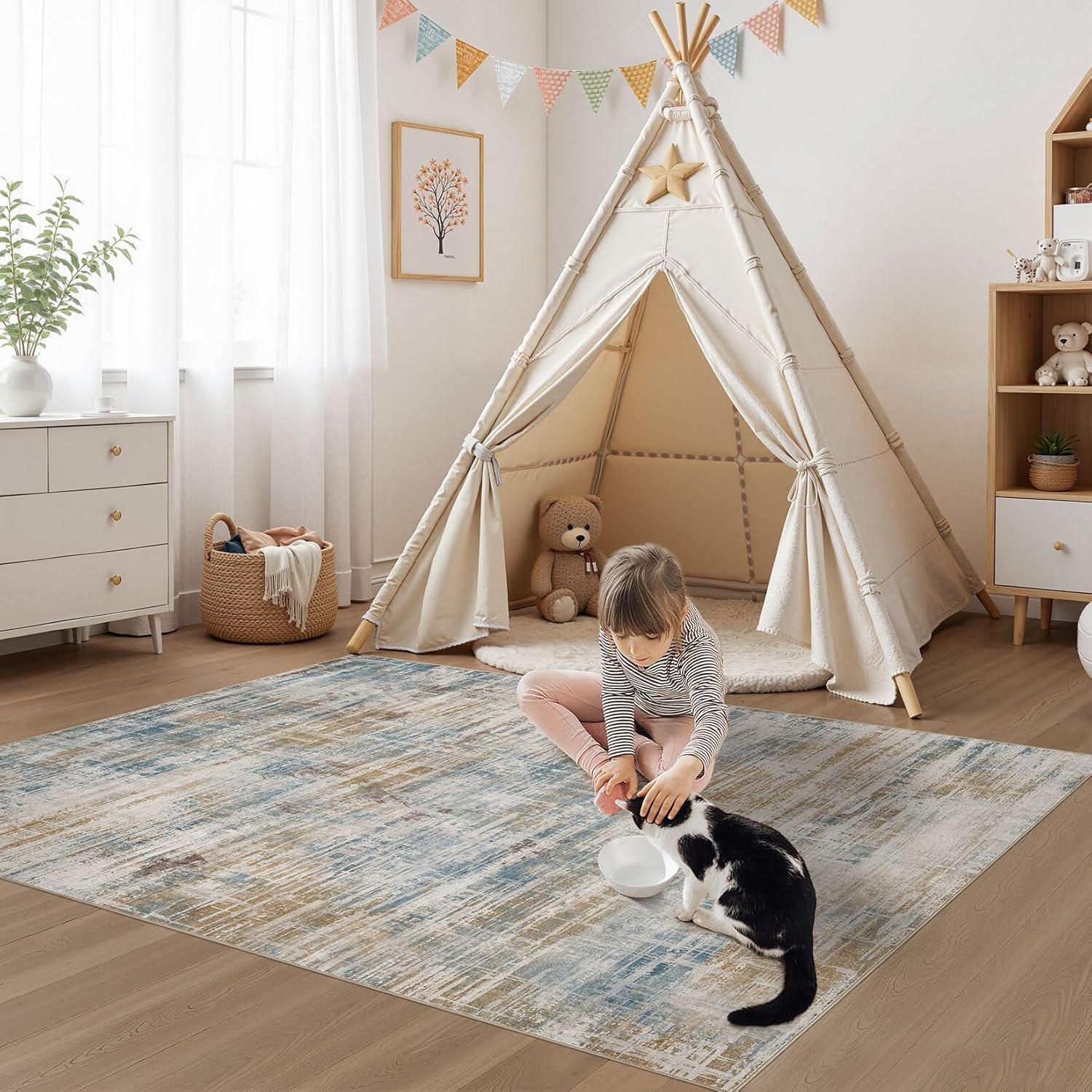 - Washable & Easy Care: Say goodbye to stains and spills! Our living room rug is machine washable, easy to maintain. Minor stains wipe off easily use robot or vacuum. Stain-resistant, lightweight design keeps it new even in busy households