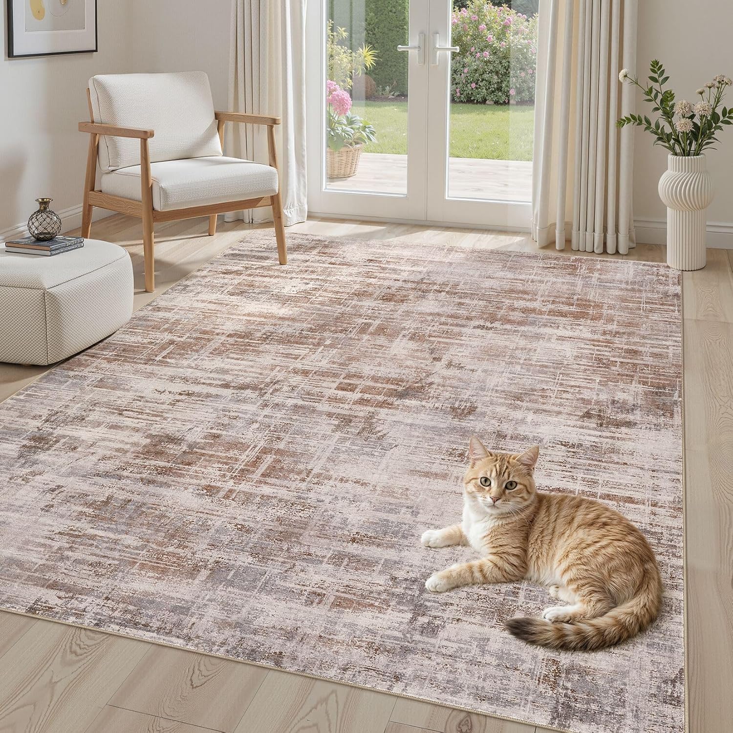 Area Rug for Living Room: 6x9 Washable Neutral Abstract Modern Soft Rugs Non Slip Indoor Floor Stain Resistant Large Carpet for Bedroom Dining Room Office Nursery - Red Brown