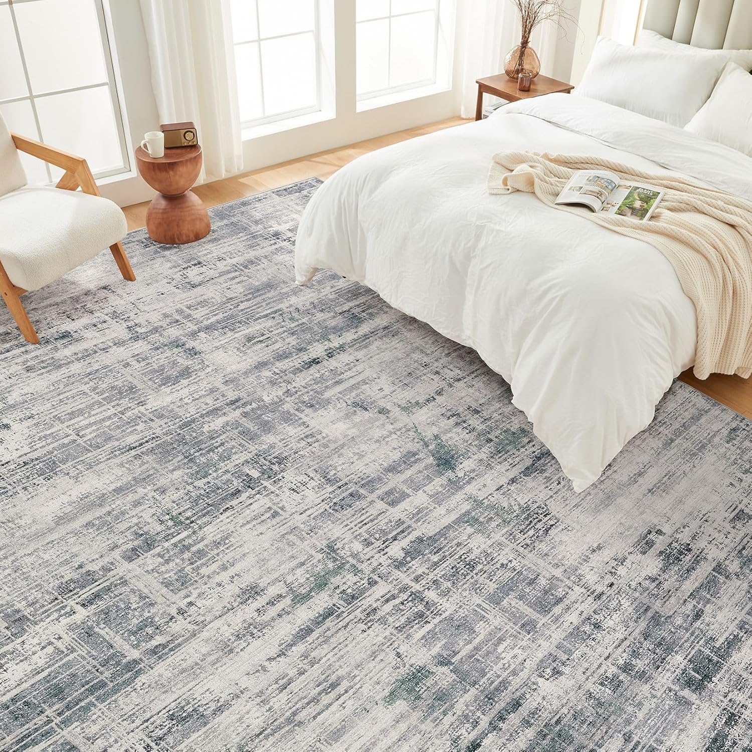 Area Rug for Living Room: 10x14 Washable Neutral Abstract Modern Soft Rugs Non Slip Indoor Floor Stain Resistant Large Carpet for Bedroom Dining Room Office Nursery - Gray