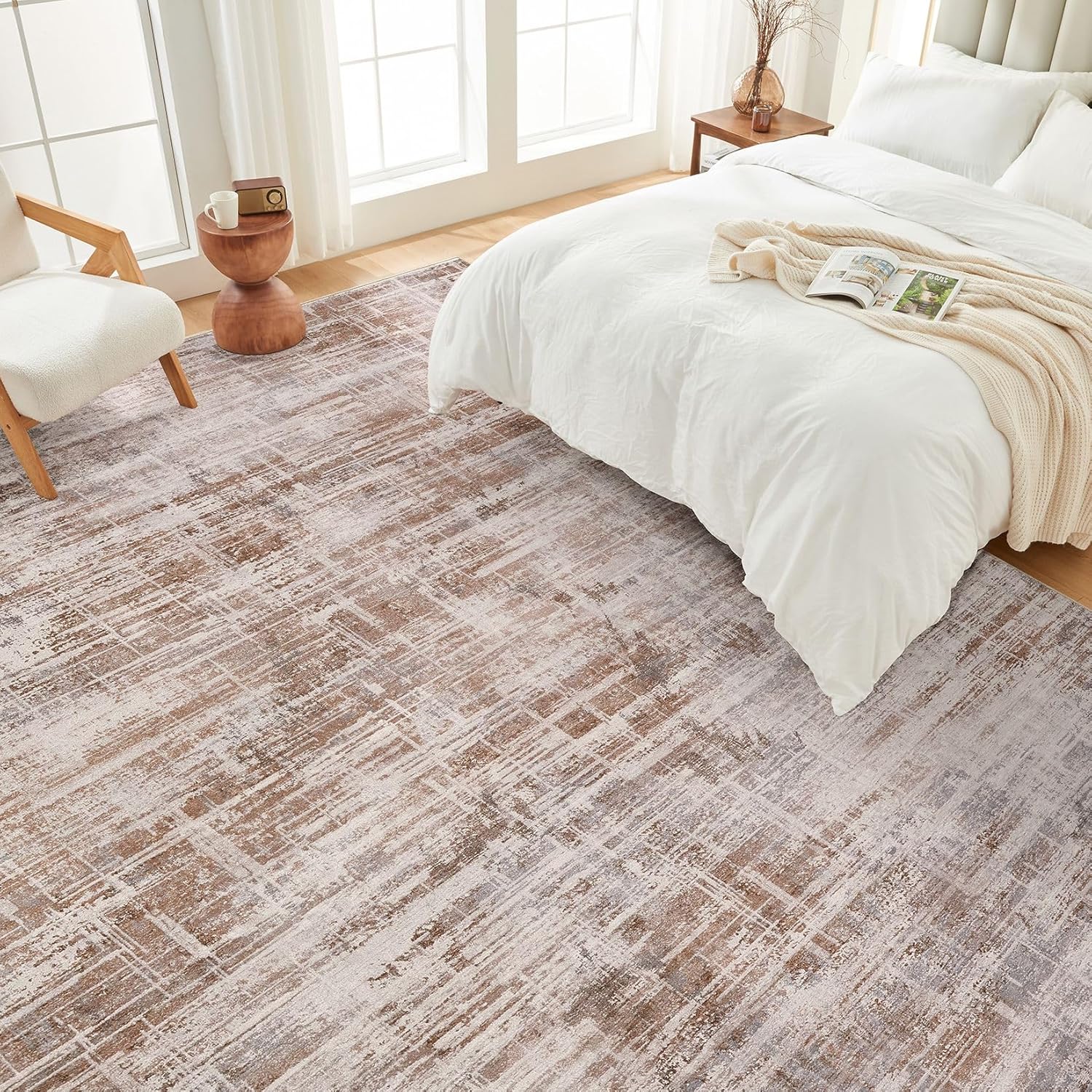 Area Rug for Living Room: 9x12 Washable Neutral Abstract Modern Soft Rugs Non Slip Indoor Floor Stain Resistant Large Carpet for Bedroom Dining Room Office Nursery - Red Brown