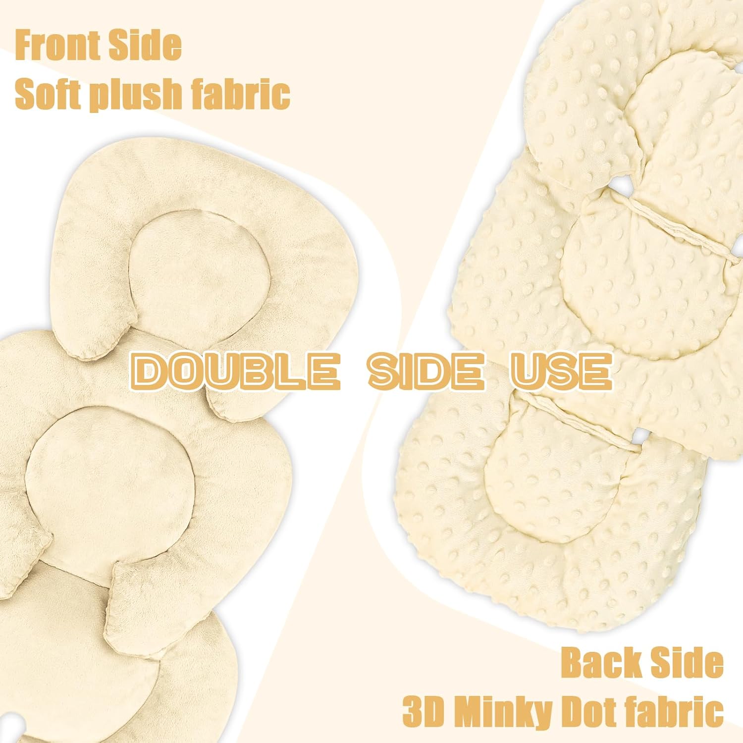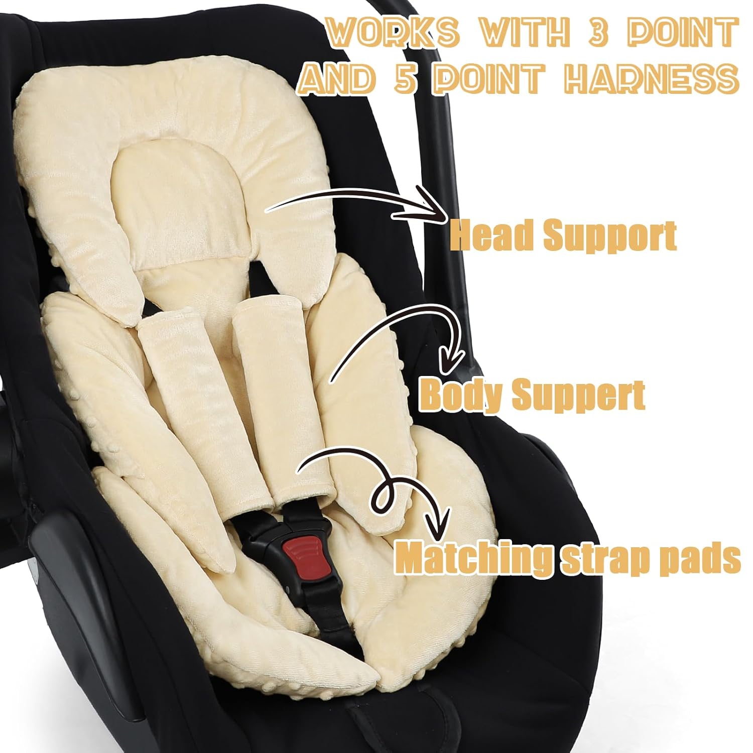 GFU Infant Car Seat Insert Head and Body Support, Reversible Newborn Insert for Carseat with Strap Pads, Soft Stroller Cushion Pillow Insert for Boys and Girls, Fits for Stroller, Swing, Beige