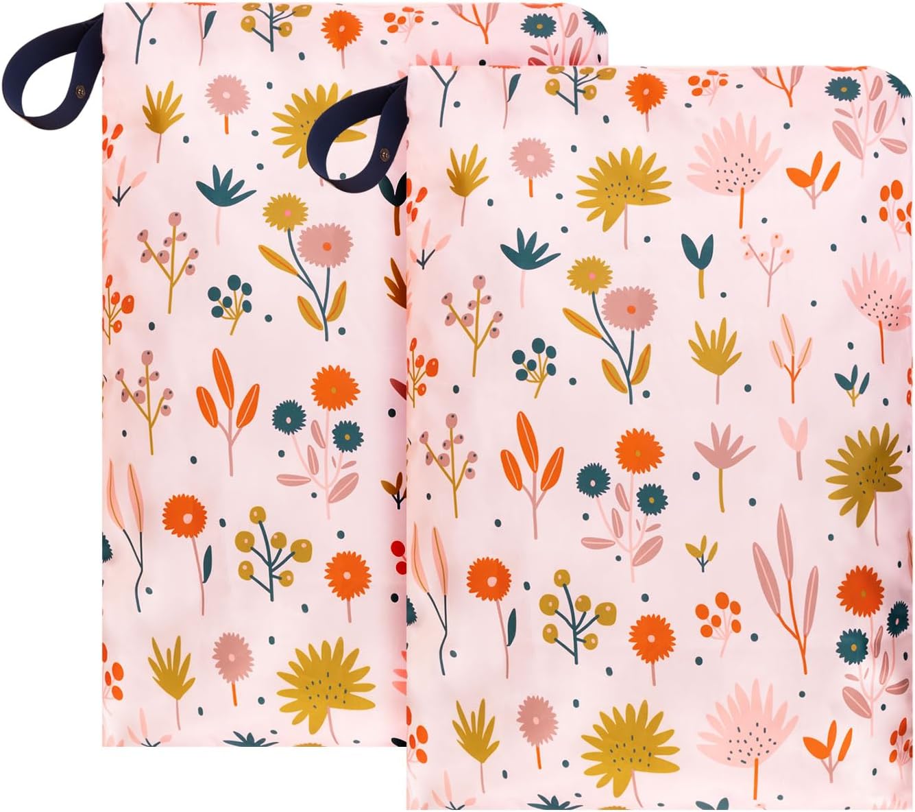 MissBoy Laundry Bags, 2 Pack Waterproof Travel Laundry Bag, Reusable and Washable Dirty Clothes Storage Bag with Zip Closure for Home, Travel, Camping, Caravan, Dormitory, 24"x17"