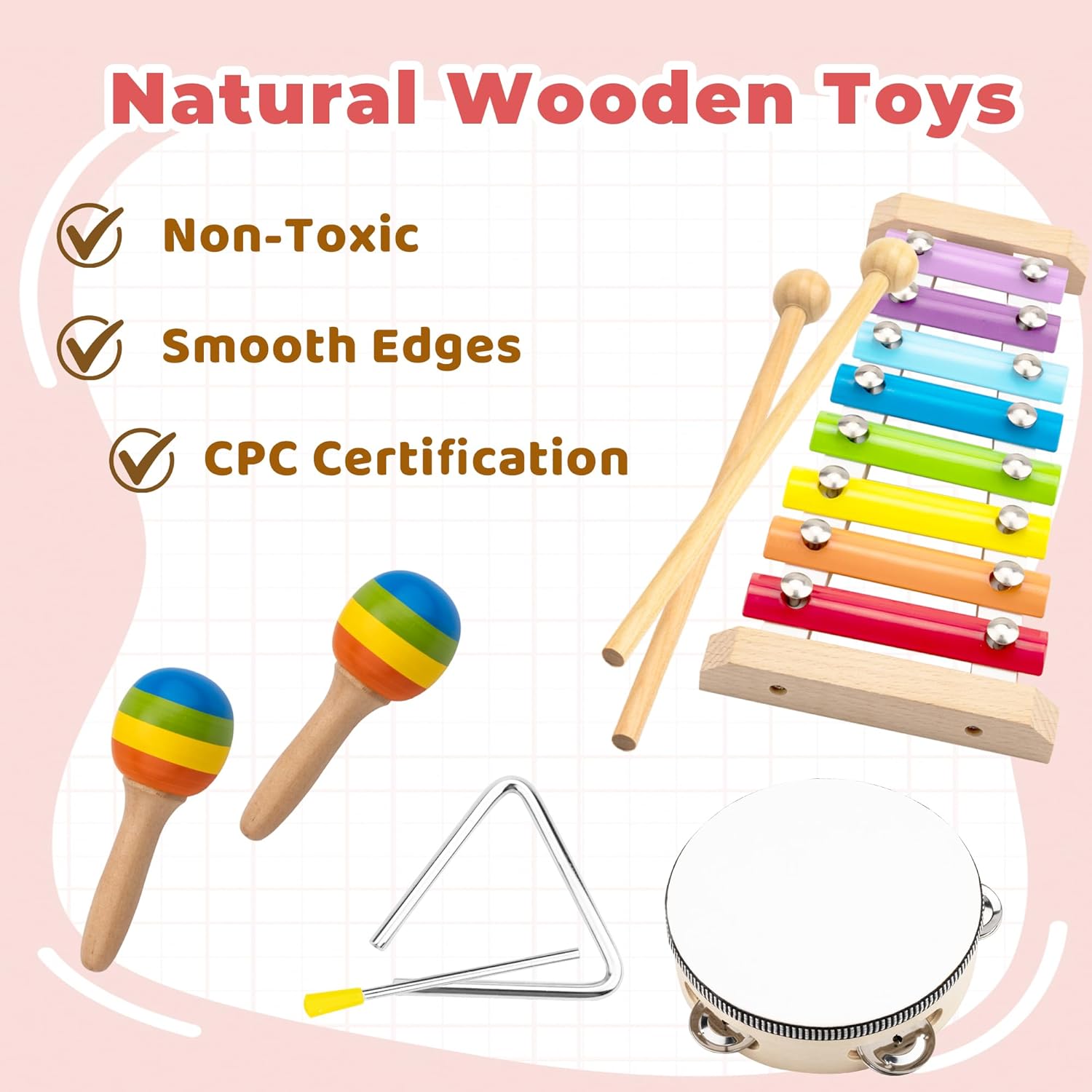 Montessori Toys for 1 2 Year Old,Musical Instruments for Toddlers 1-3 ,Baby Wooden Toy Set,Educational Music Toys Stocking Stuffers for Boys Girls Age 1 2 3 Year Old