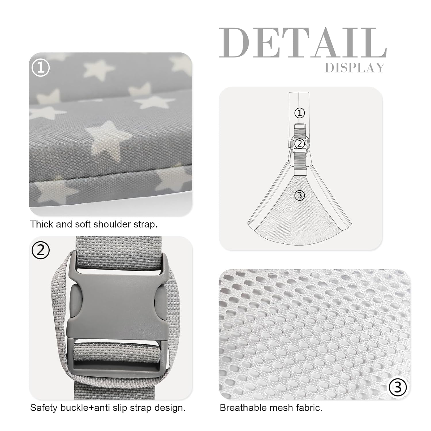 - Safety Buckle:The baby carrier newborn to toddler are designed with buckles at the front and back to ensure safety during use