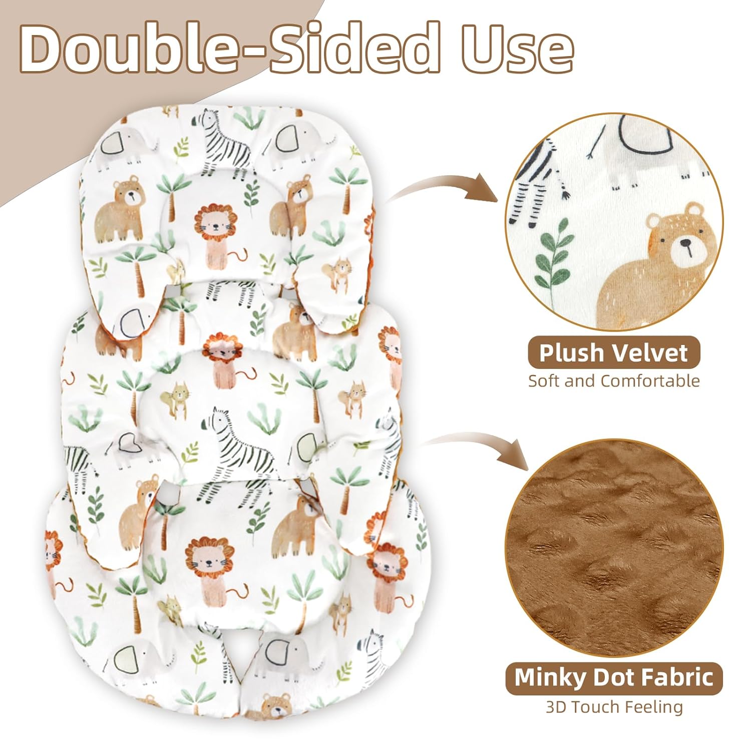 - Reversible Design:This infant car seat head body support is printed with a stylish pattern on one side and a 3D-touch simple solid color on the other side, one baby car seat cushion has two different styles