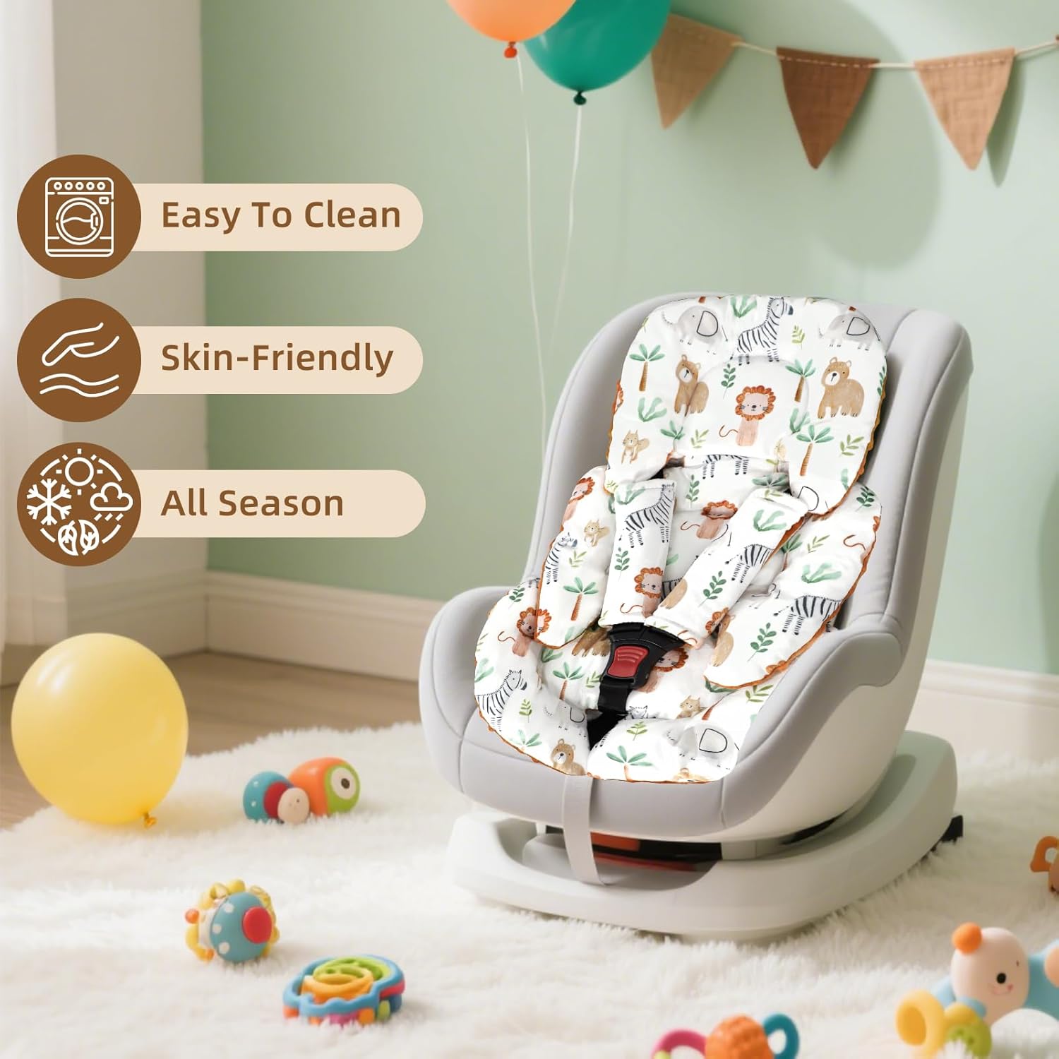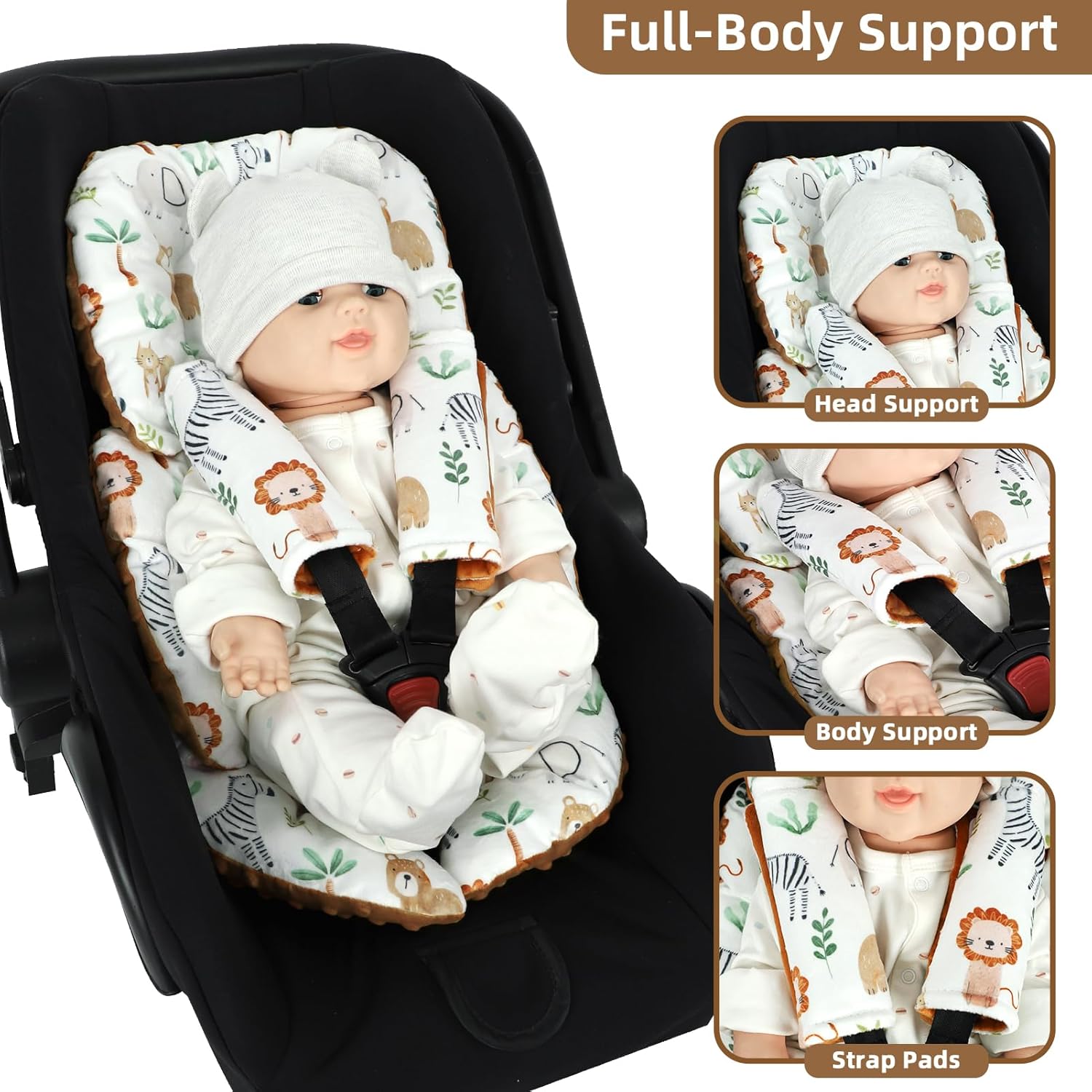 Infant Car Seat Insert Cushion, Baby Car Seat Head Body Support for Girls & Boys, Reversible Newborn Car Seat Insert with 2 Extra Strap Paddings, Premature Car Seat Cushion, Animal