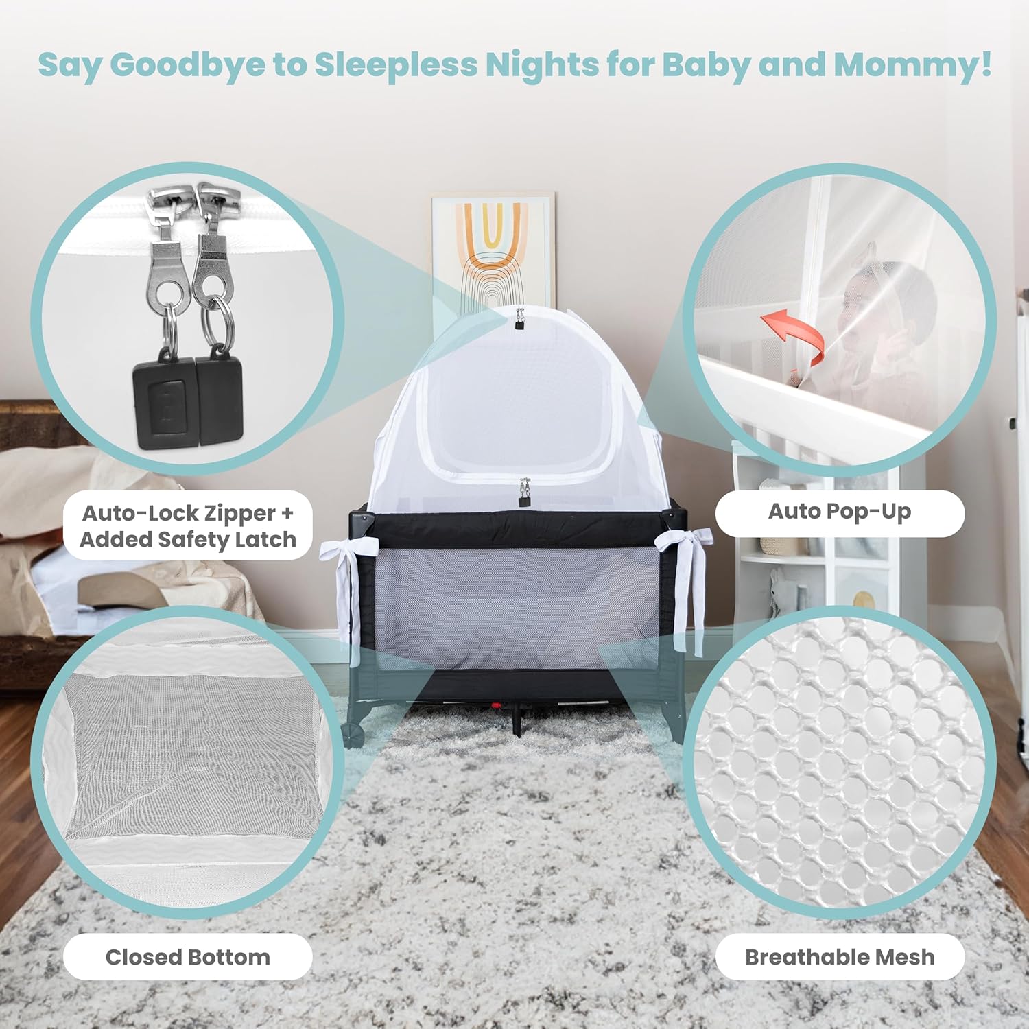 Mini Crib and Pack and Play Tent, Net Canopy to Keep Baby from Climbing Out, Breathable Mesh with Auto-Lock Zipper and Latch, Safety Tent for Travel and Sleep (Mosquiteros para Cunas de Bebes)