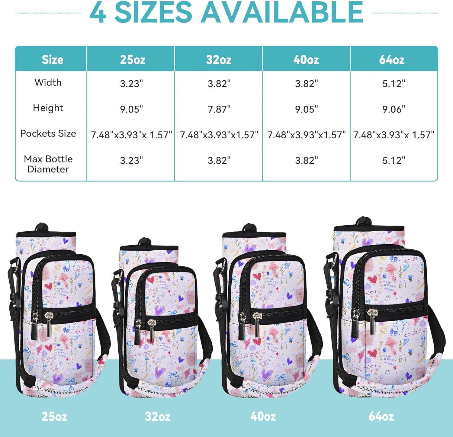 • AVAILABLE IN FOUR SIZES:Our AUPET water bottle crossbody bags has four sizes for you to choose,25oz/32oz/40oz/64oz,please refer to the picture to choose the right size<br/>
