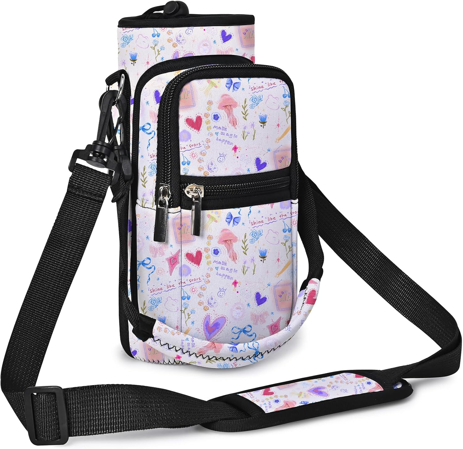 • GREAT FOR TEENS & ADULTS: Both adults and Kids can find great use in this AUPET water bottle carrier holder. Use it for walking,running,gym,cycling,hiking and more.with two zipper pockets for smartphone,cash,card keys and other small items.with the adjustable shoulder strap and the carring strap,it will fits all body types,you can wear over the shoulder, cross chest as a sling bag or just hand carring.<br/>