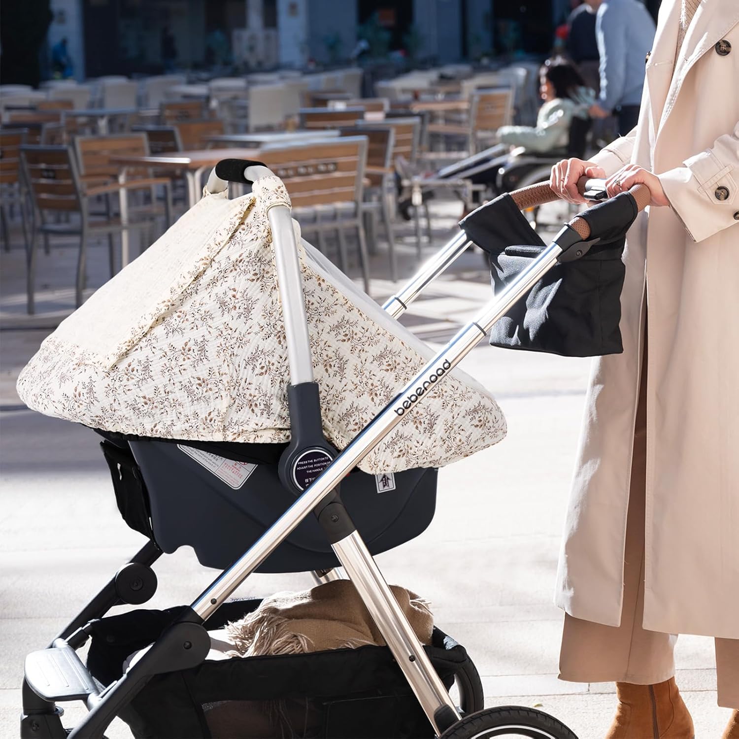 Beberoad Love Baby Car Seat Cover, Breathable Mesh Window & Windproof Canopy, Universal Fit for Infant Car Seats – Lightweight, Easy Install (Beige)