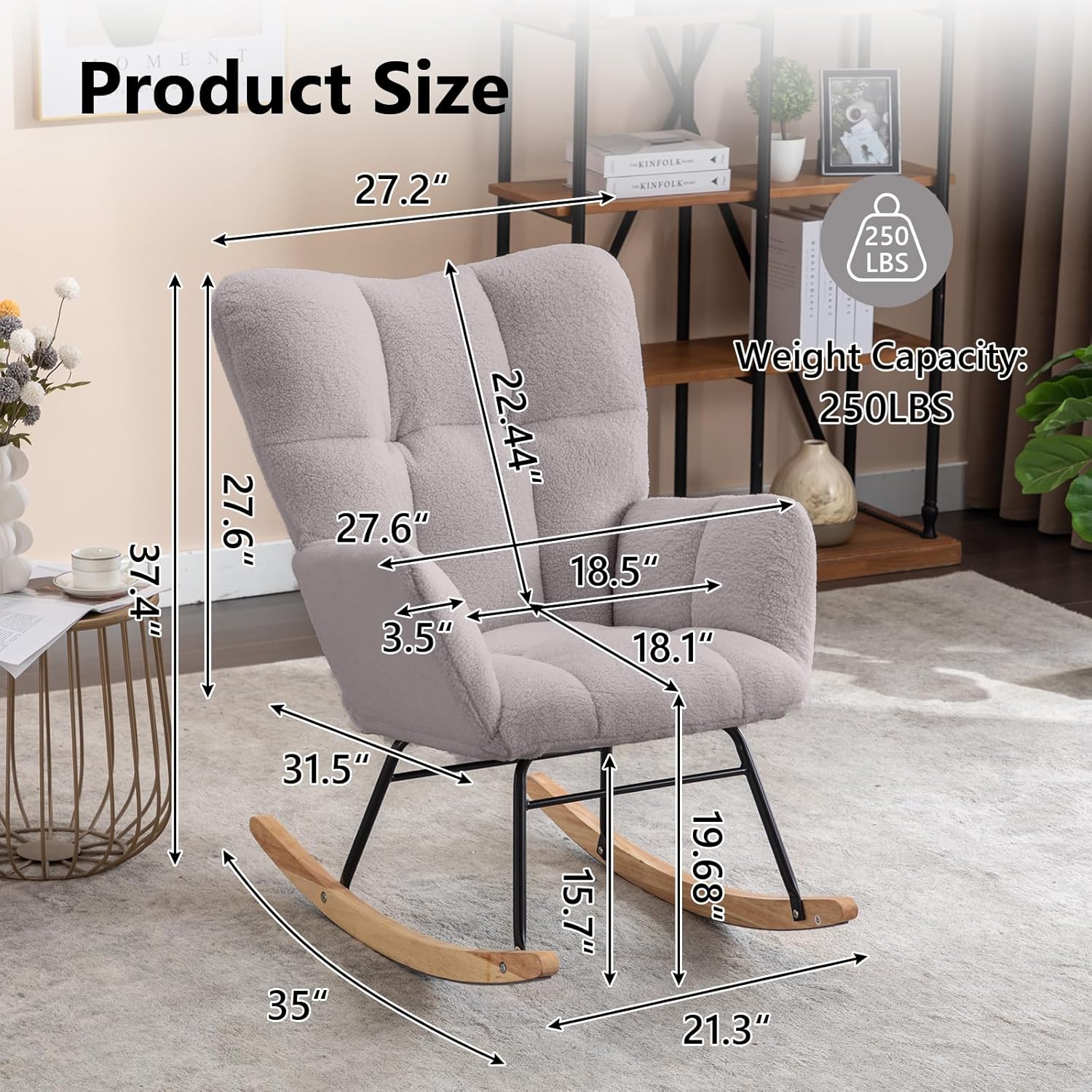 - Ergonomic & Elegant Design - High backrest and armrest provides you with great comfort and safety. Wood color legs can adorn your house. Gently rock your baby to sleep during nap time or read to your little ones in this comfy chair