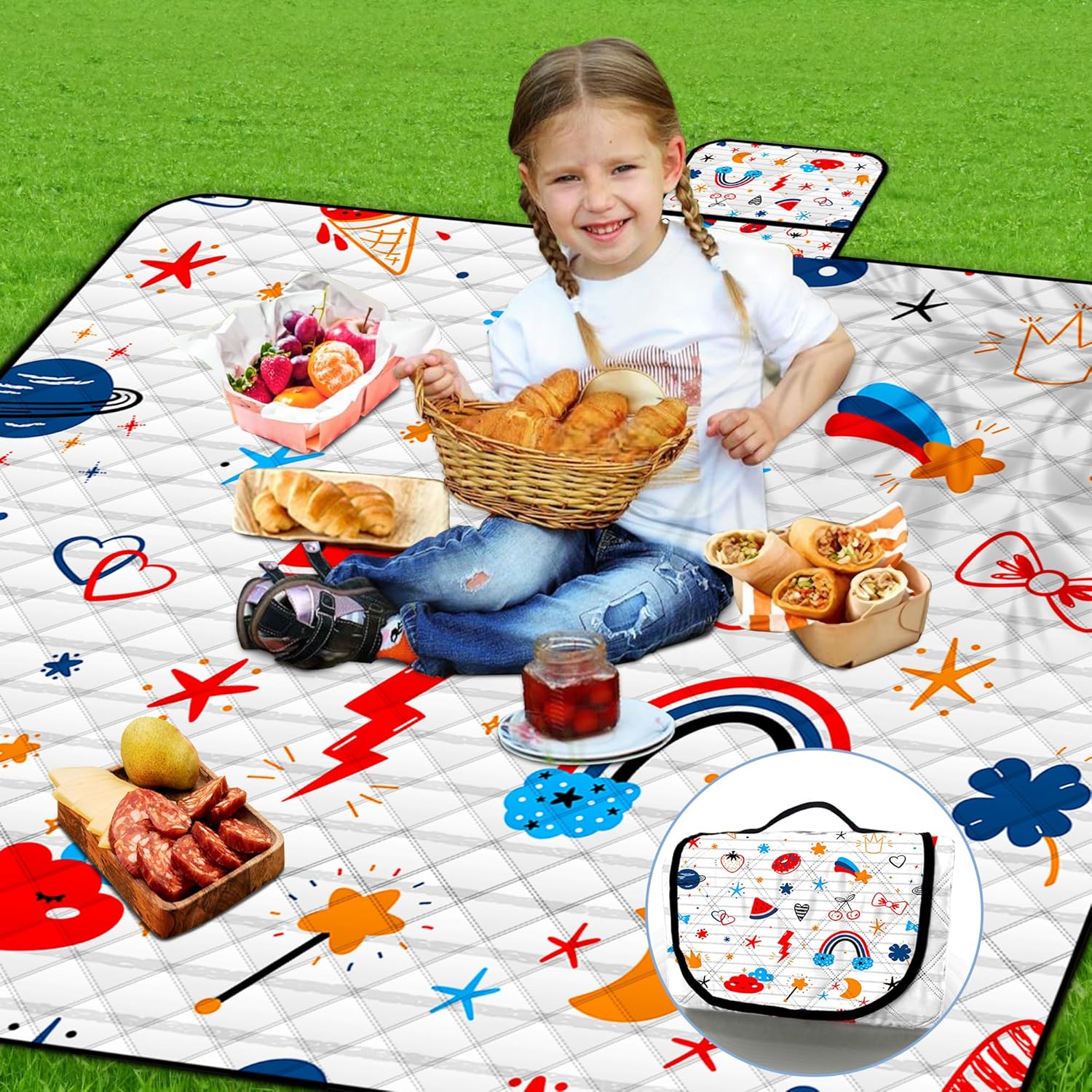 Poedist Extra Large Picnic Blanket Waterproof,80"x 80"Foldable Machine Washable Beach Blanket,Outdoor Blanket for 6-8 Adults,Suitable for Indoor Crawling,Park Beach,Camping,Hiking,Family Travel(Cute)