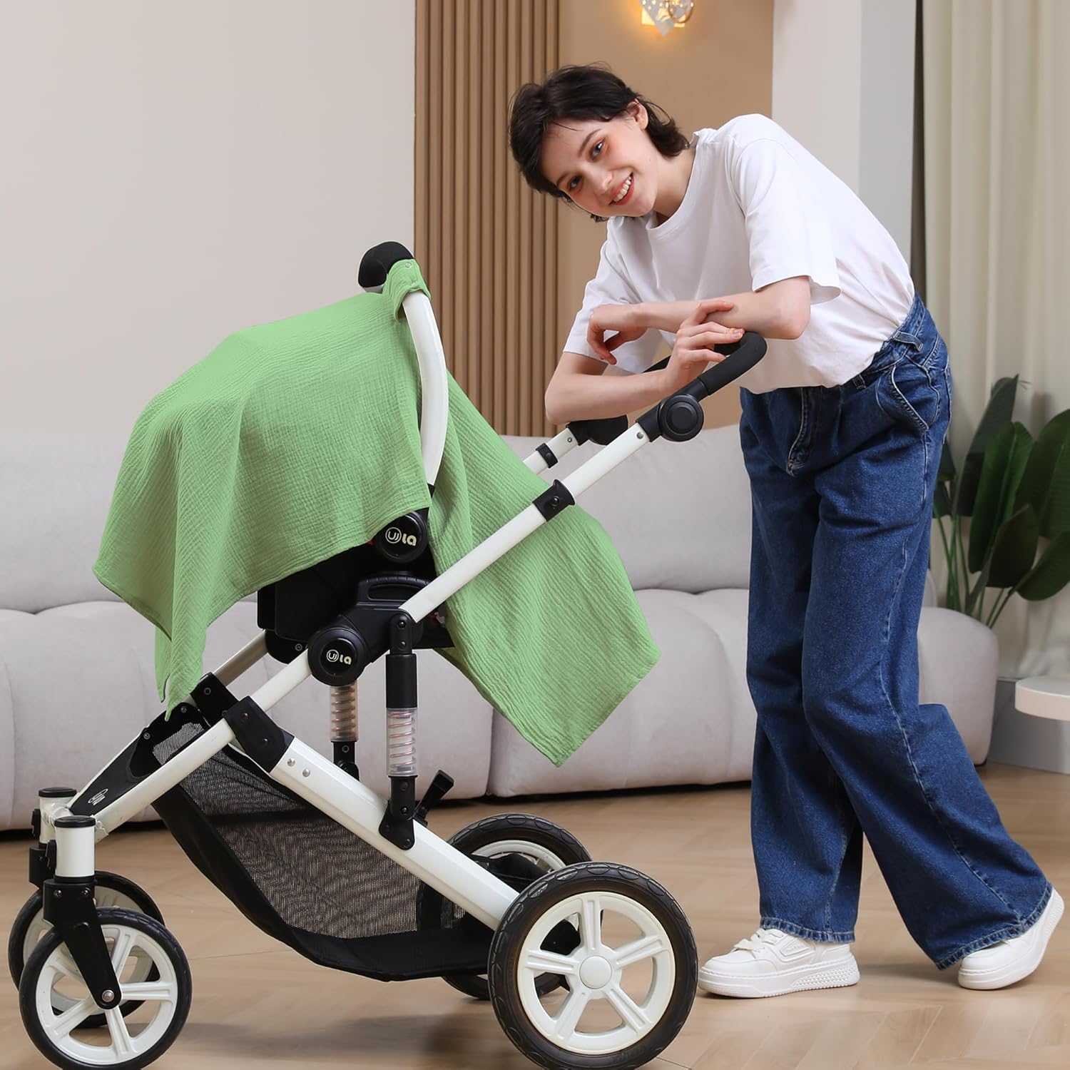 100% Muslin Cotton Car Seat Cover Baby, Carseat Canopy Cover, Universal Fit Stroller Covers for Boys and Girls (City Green)