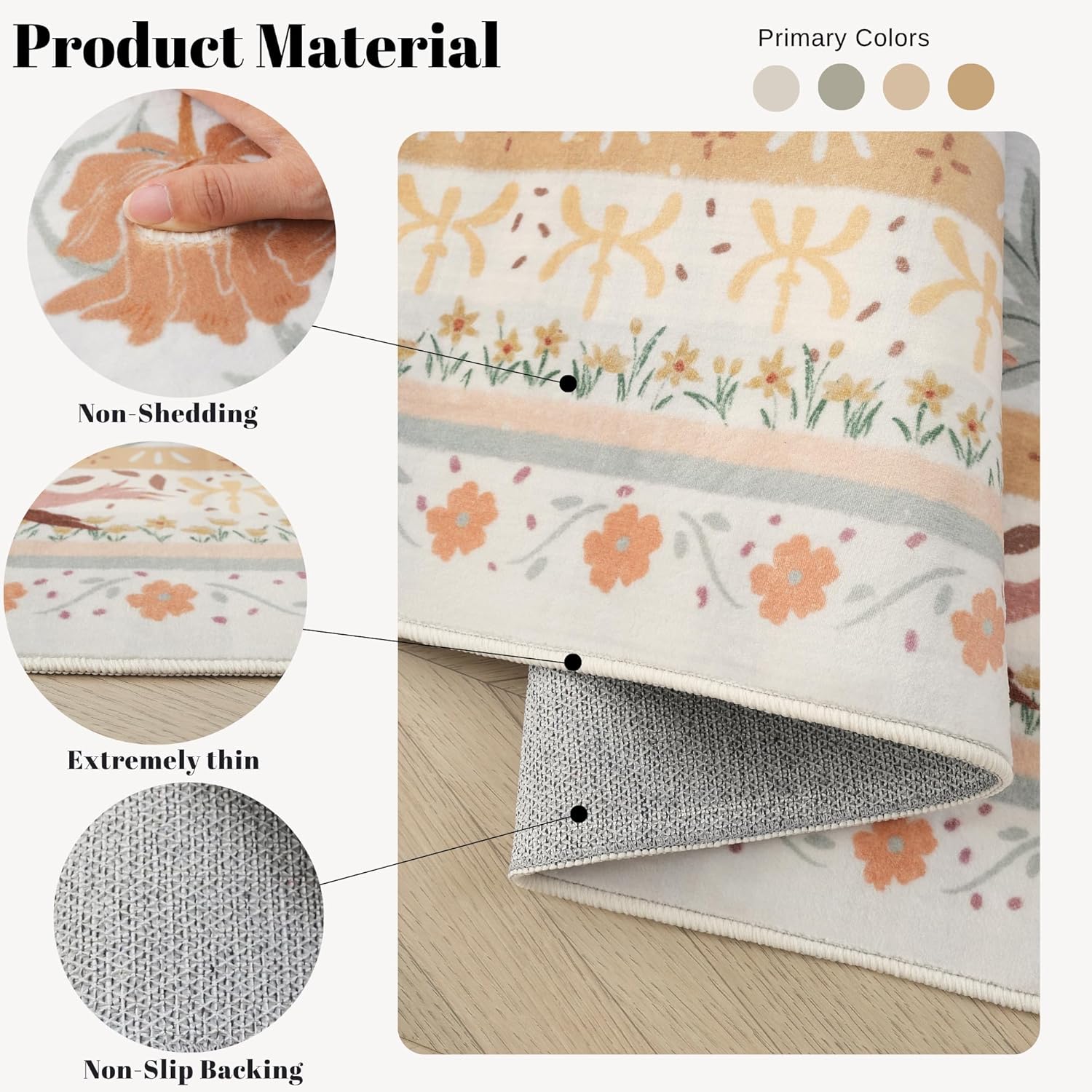 - Non-Slip Rug—Textured TPR-coated backing ensures secure placement—no extra pad required. Vintage floral botanical patterns add dynamic charm to living rooms, bedrooms, dining areas, entryways, playrooms, home offices, kitchens, and more.