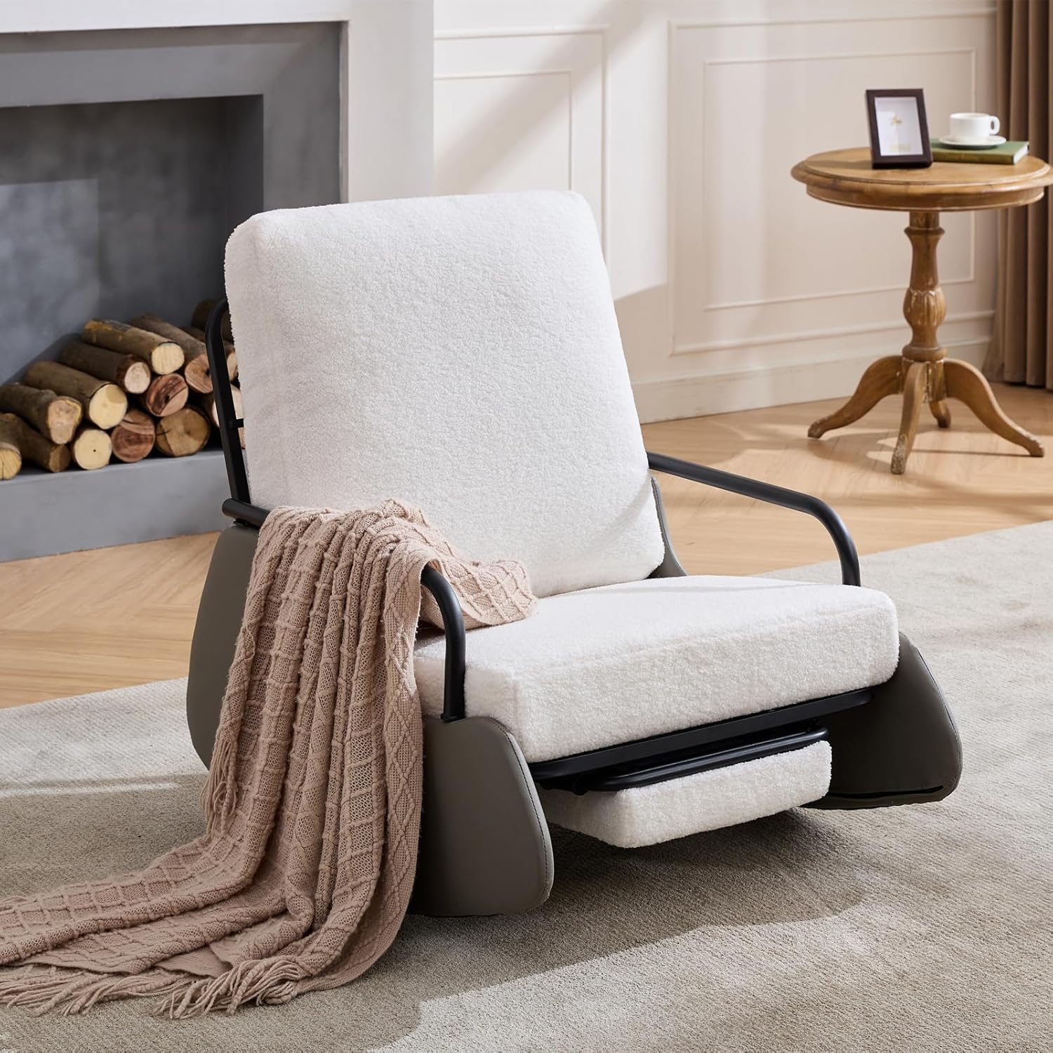 - Great Nursery:This rocking arm chair is a good ideal for mothers to feed your little one and coax their baby into sleep with free hands. With an adjustable range of 90 to 160 degrees, the whole recreational glider rocking chair is soft enough for you to enjoy yourself and relax your body after tired work.