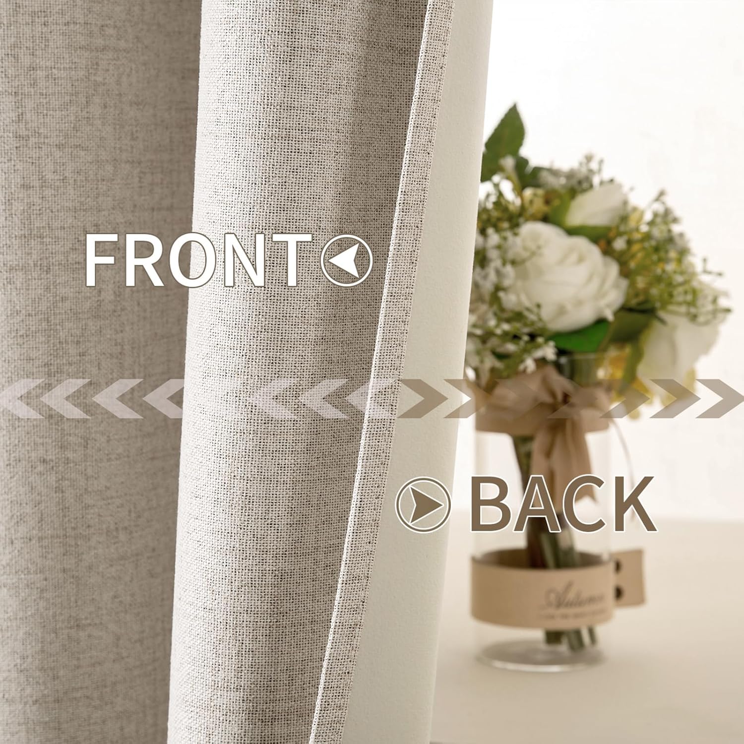 MIULEE 90 Inches Linen Textured Curtains for Bedroom 100% Blackout Thermal Insulated Natural Grommet Room Darkening Curtains & Drapes Luxury Decor for Living Room Nursery 52 x 90 Inch (2 Panels)