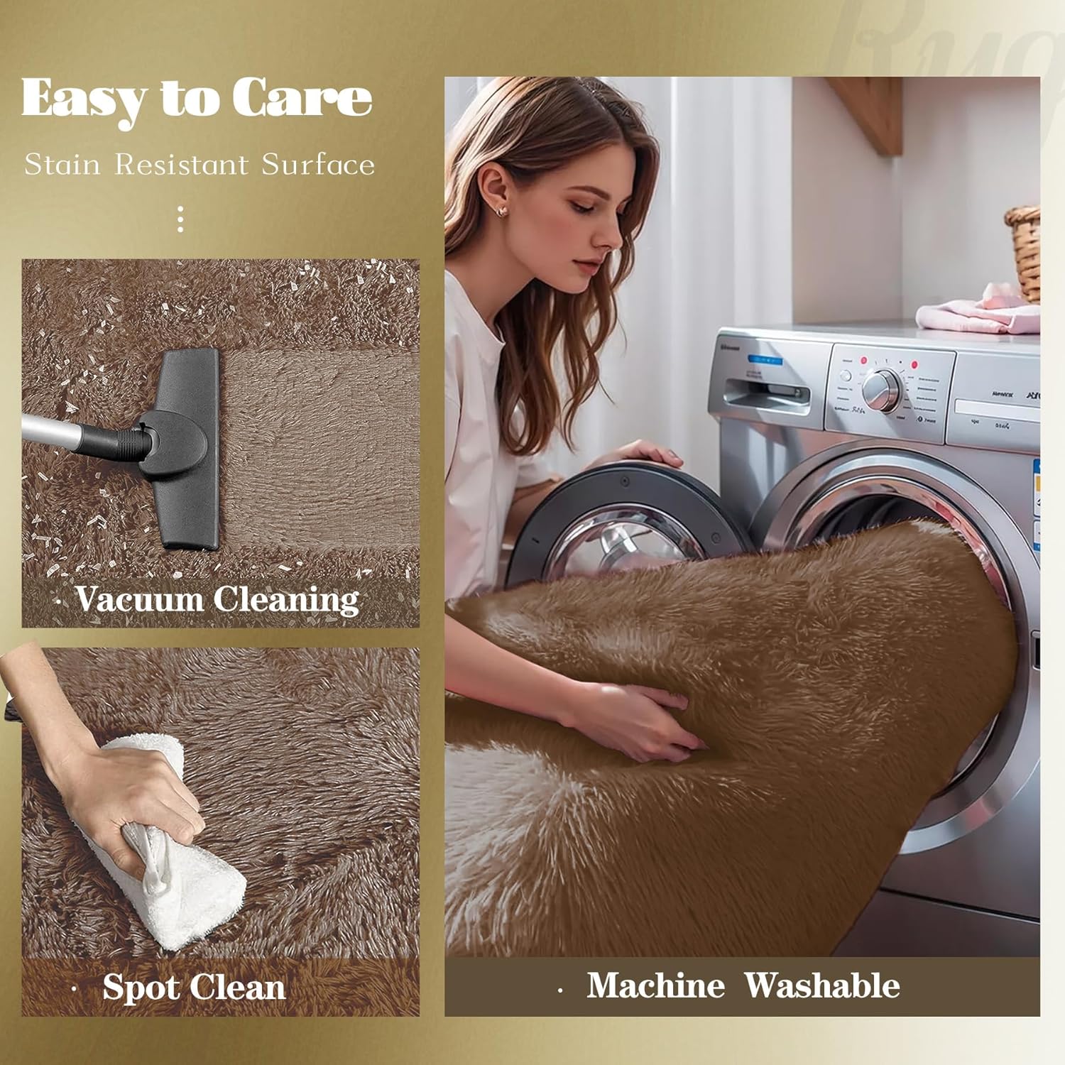 - MACHINE WASHABLE RUG: This shag rug 6x9 is designed for effortless care. This bedroom rug is machine washable for thorough cleaning, and it’s best to let it dry fully before using it again. For everyday maintenance, simply use a vacuum cleaner or spot clean as needed. It is easy to keep looking fresh with minimal effort.