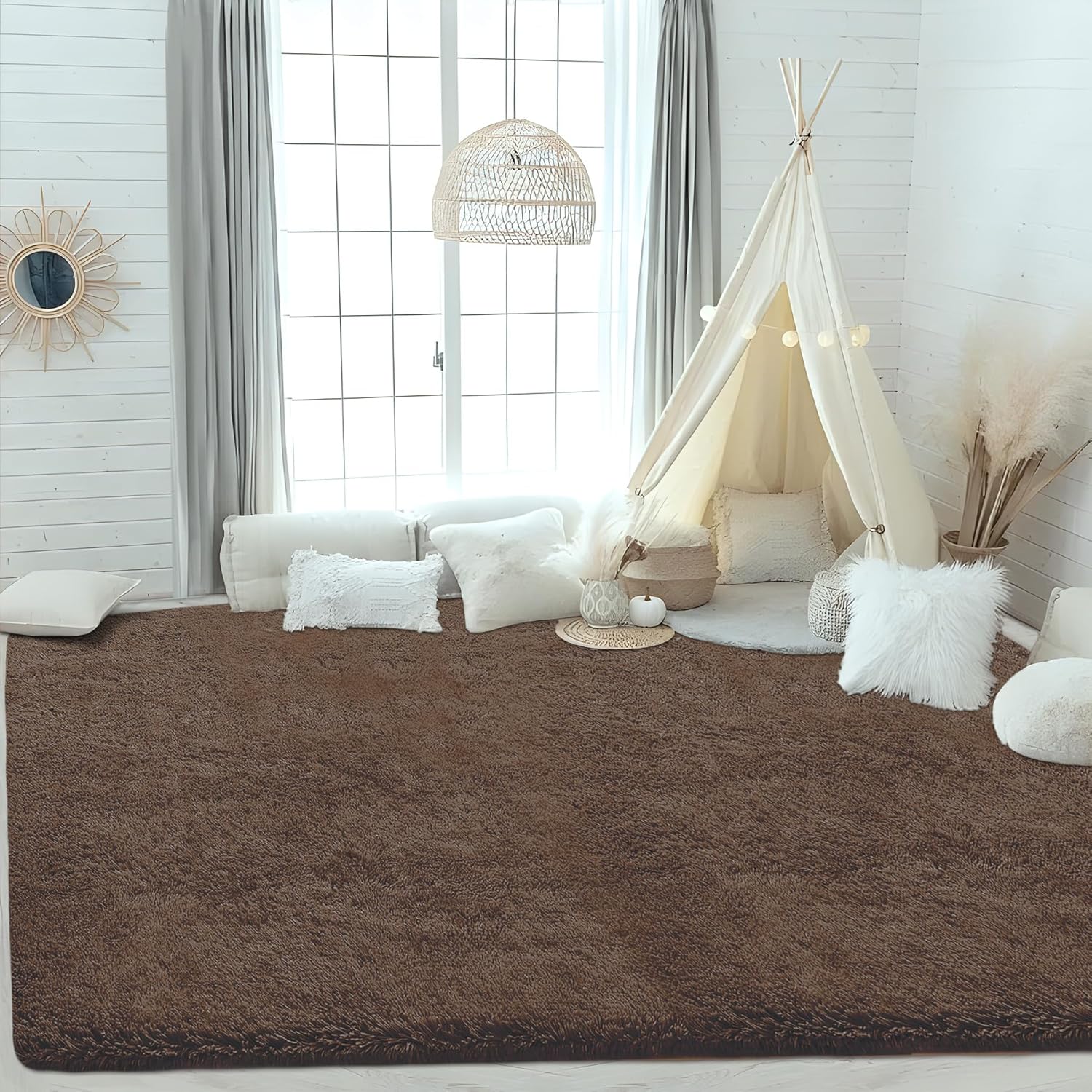 4x6 Area Rug for Living Room: Fluffy Shag Soft Washable Rugs Fuzzy Plush Indoor Carpet for Bedroom Nursery Playroom Dorm Kids Girls Boys Room (Coffee, 4'x6')