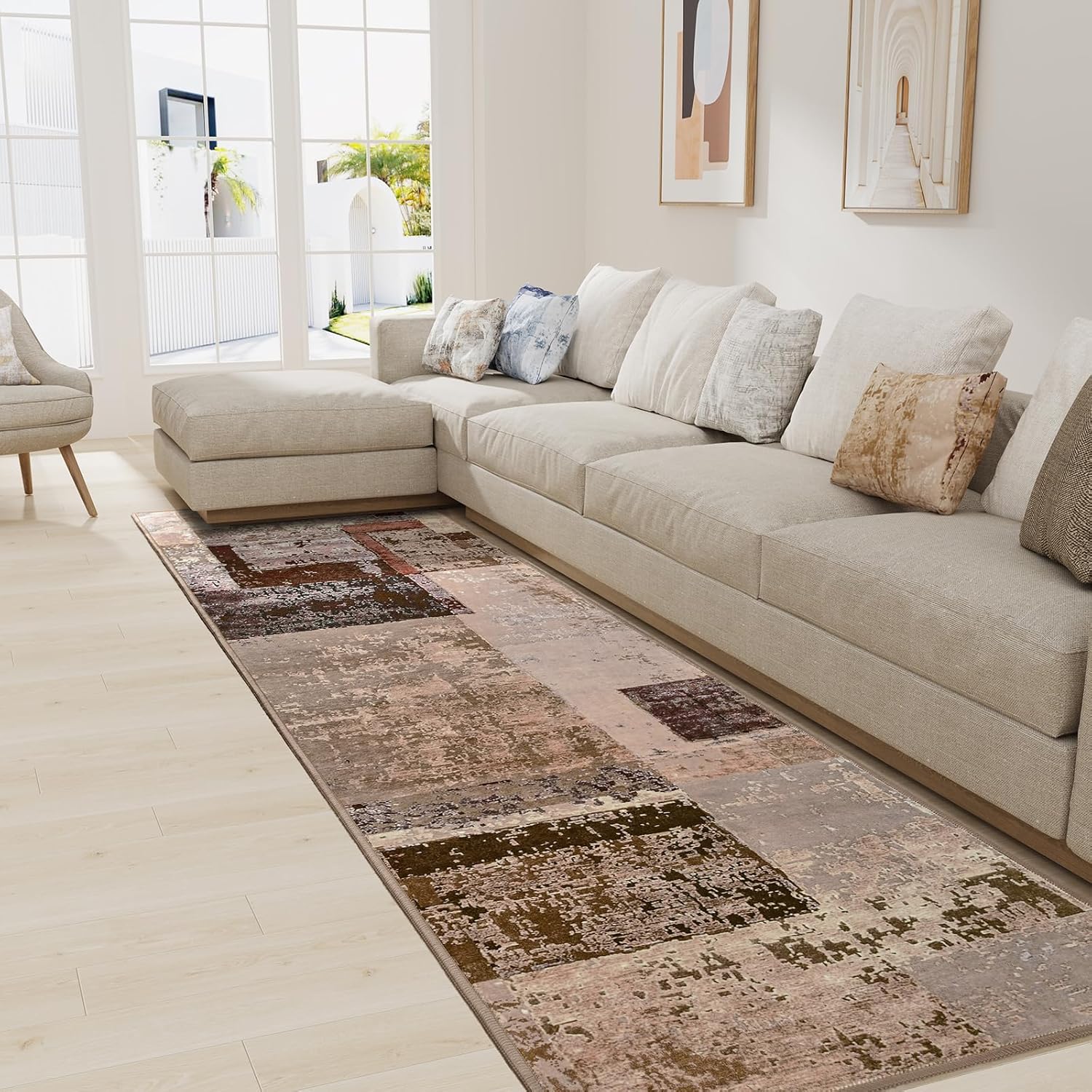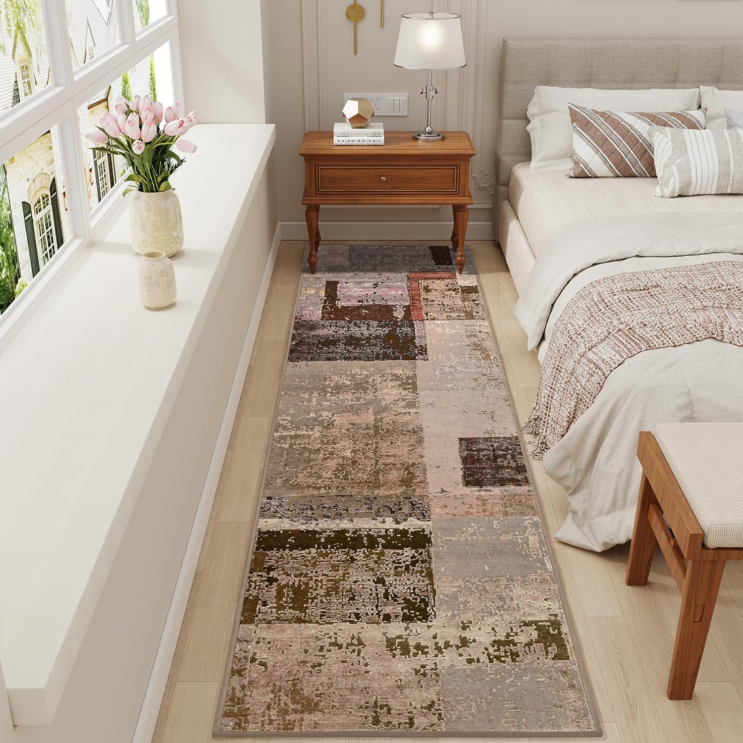 LOCHAS Washable Runner Rugs for Hallway, 2x8 Non Sip Soft Rug for Bedroom Entryway Kitchen Laundry Room, Long Abstract Carpet for Indoor Floor Bedside, Geometric Vintage Home Decor, Pet & kid Friendly