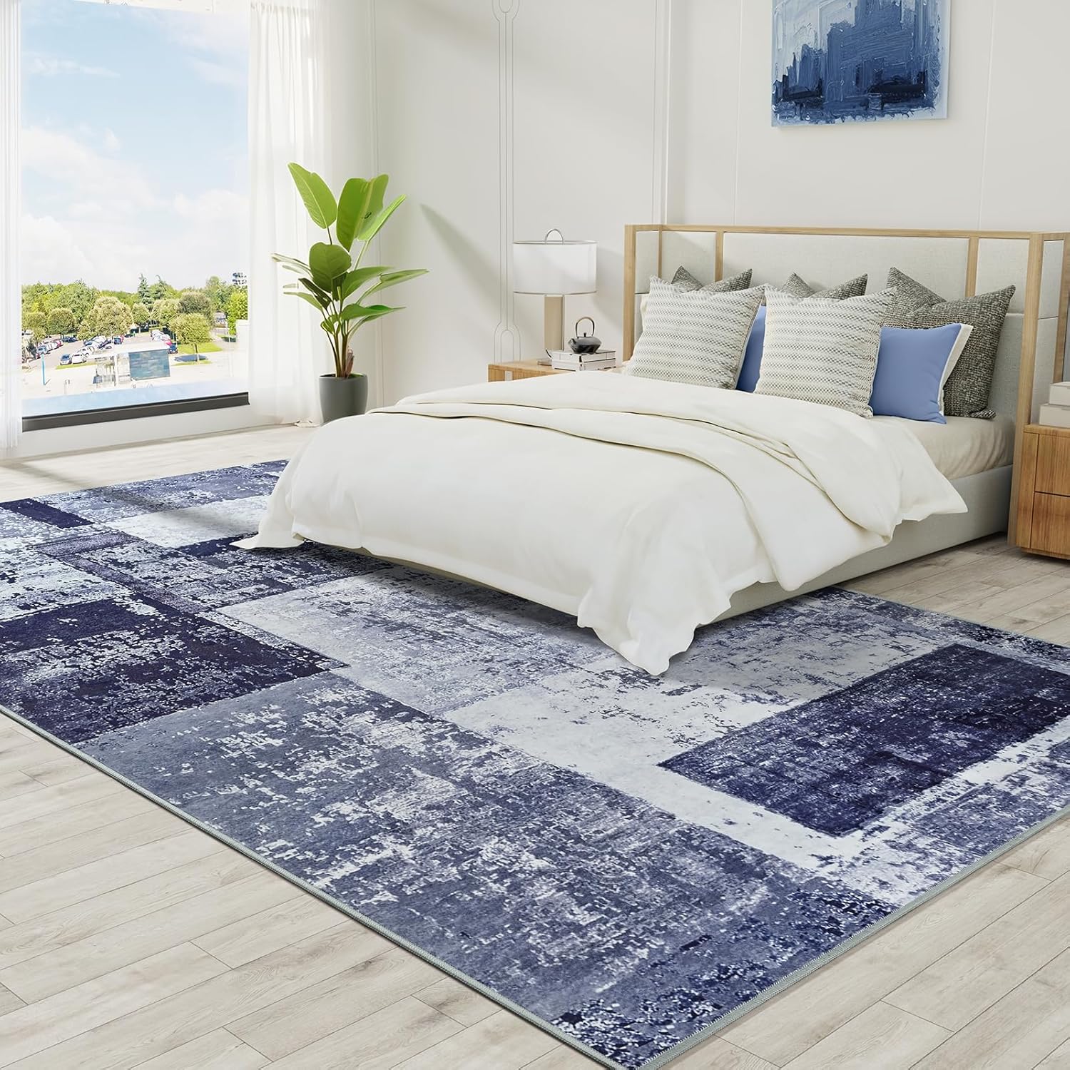 - Abstract & Geometric: A blend of retro style, geometric patterns and abstract elements, area rug for bedroom comes with a sense of a movie filter! This instantly turns your room into a mid-century modern gallery. Pair up with classic wooden furniture adds to the retro atmosphere. Match dark curtains create a sense of privacy and elegance.