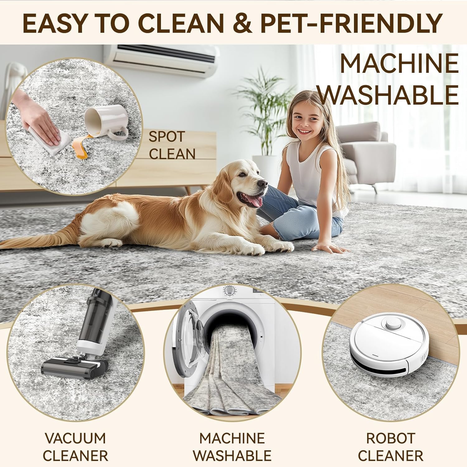 - Tides Series โ Effortless style that flows with your life.This modern machine-washable non-slip rug features reinforced edges and a low-pile design that resists dirt. Its water-repellent surface makes spills easy to clean - liquids bead up for quick wiping. Simply machine wash in cold water (no bleach) to refresh. The non-slip backing keeps it securely in place. A perfect blend of function and contemporary design for active homes.