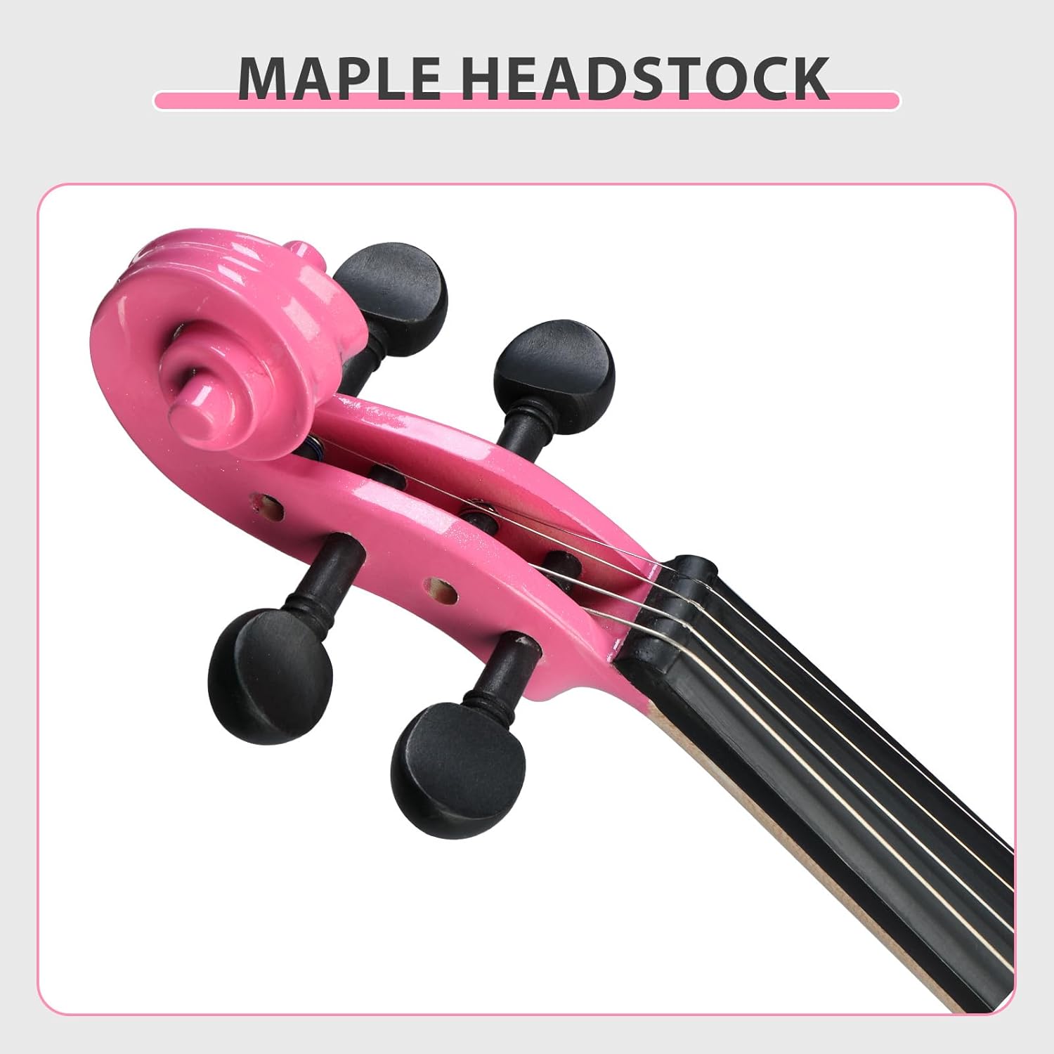 Electric Violin 4/4 Kit,Full Size Beginner Violin for Adults,Students,with Case,Bow, Rosin,Headphones,and Connecting Line,Pink