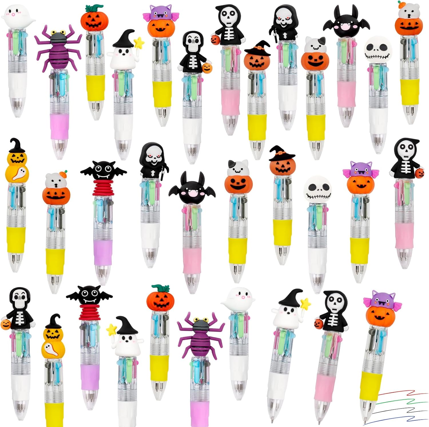 30Pcs Mini Multicolor Pens in One 4-in-1 Cute Pens Bulk for Kids, Ballpoint Pen for Birthdays and Children's Parties, Fun Gifts Assorted Ink Kawaii Pen(Halloween)