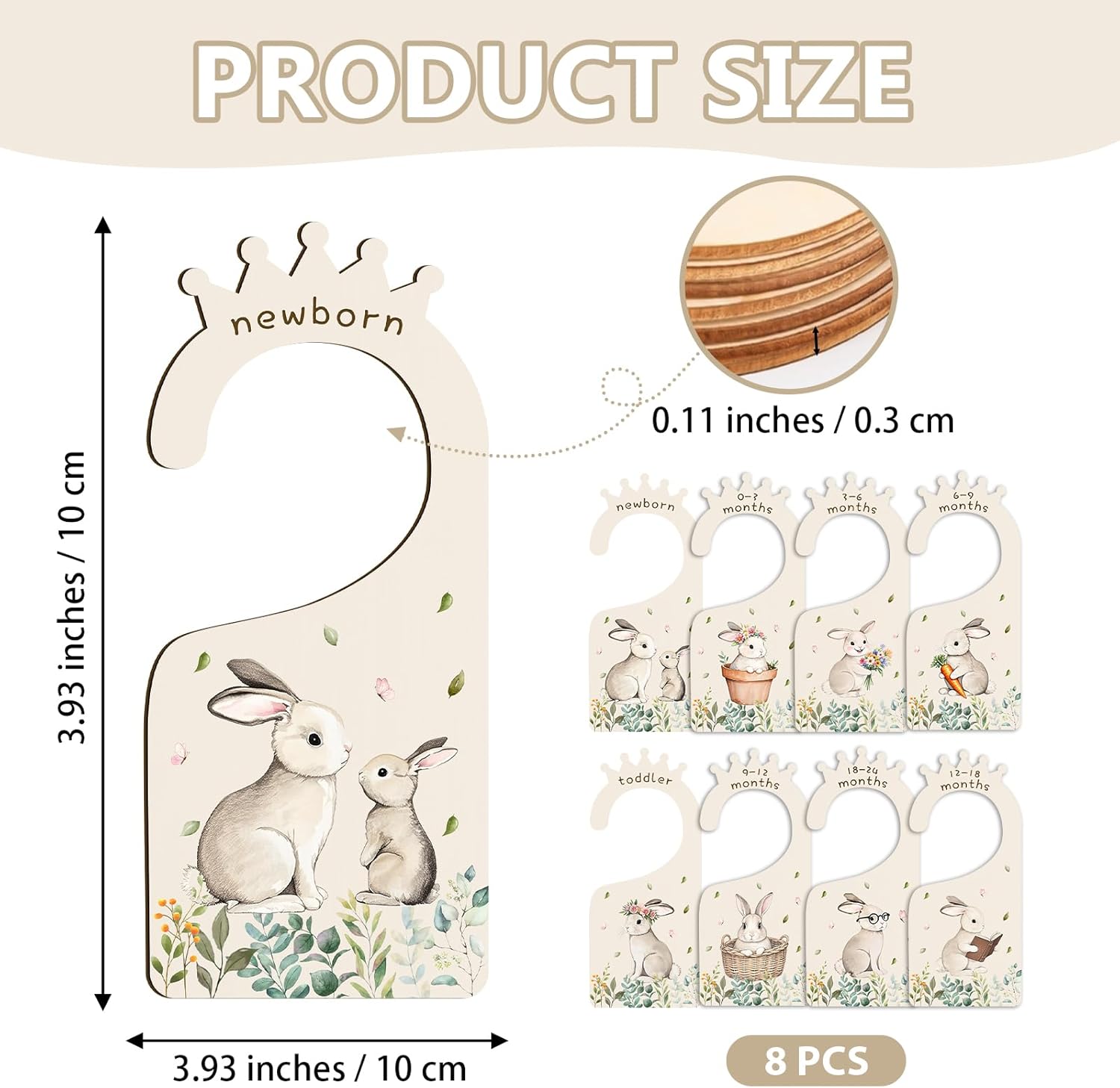 Baby Clothes Dividers for Closet - Set of 8 Wooden Baby Size Closet Dividers Newborn to 24 Months, Rabbits Babies Clothes Organizer for Boys Girl Nursery Decor Gender-Neutral Newborn Hangers Dividers
