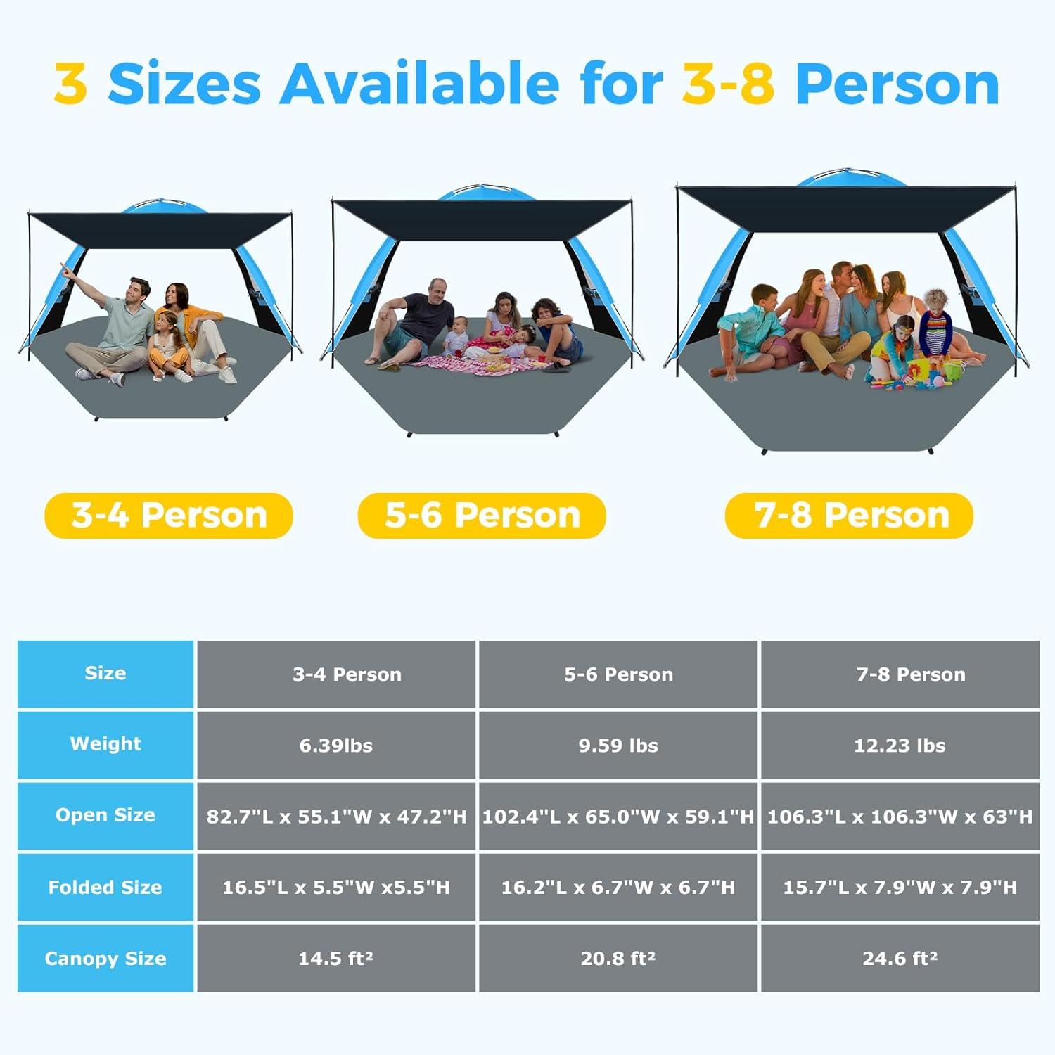 Gorich Beach Tent with Canopy - Easy Setup 3-4/5-6/7-8 Person Portable Sun Shelter, UPF 50+ UV Protection Sun Shade, Lightweight & Compact Beach Cabana for Family Travel