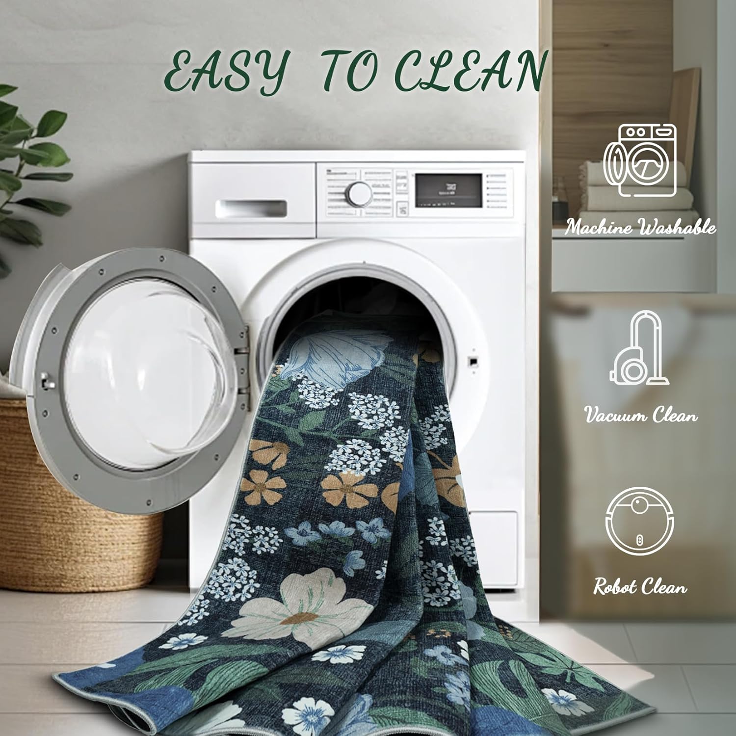 - Machine Washable Area Rugs: Bedroom rugs are stain-resistant on the surface and can be cleaned up with a low powered vacuum cleaner for everyday dust, while stubborn stains can be wiped up with a damp cloth. Vintage printed washable rug can also be thrown straight into the washing machine to save hassle and keep your rug looking new