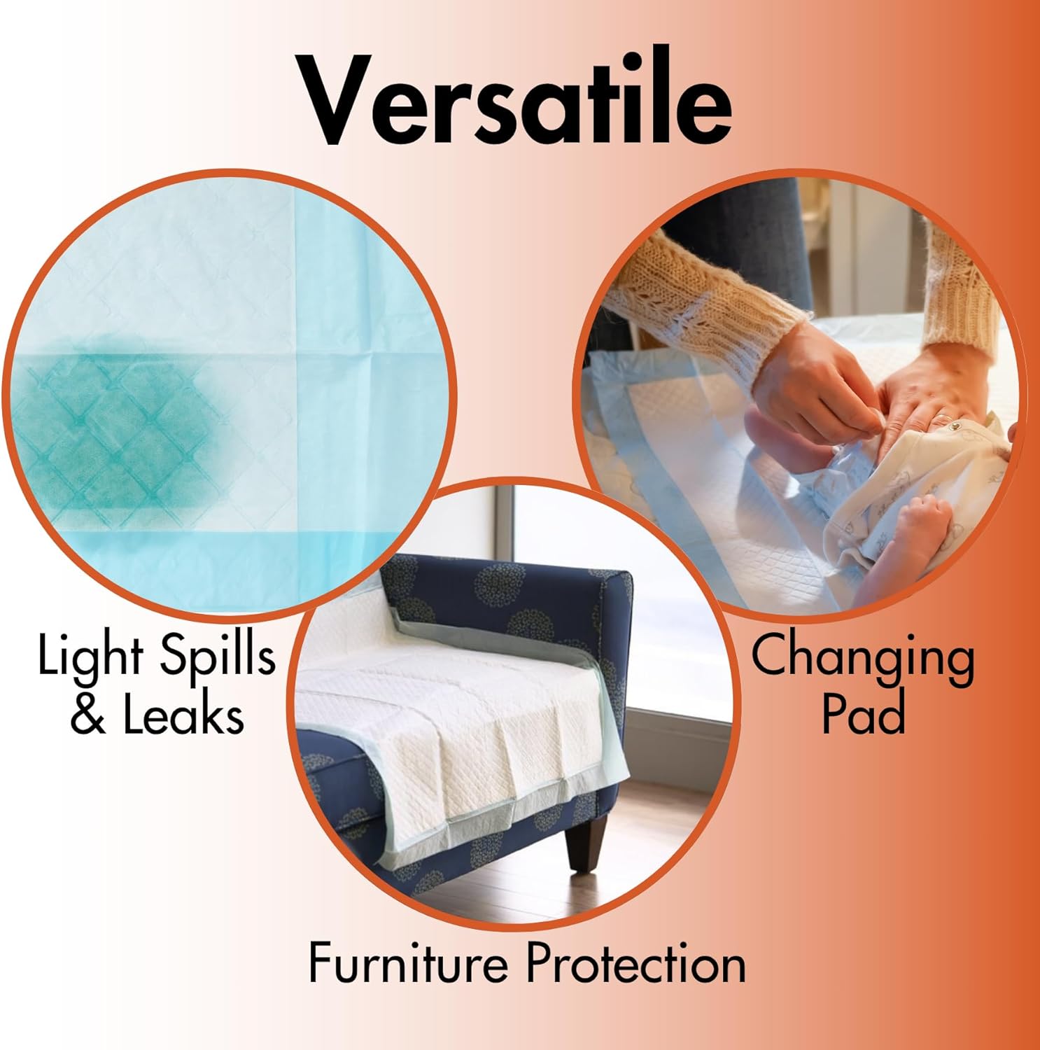 Caring Disposable Underpads, Baby Changing Liner Pads, Light Absorbency, 17 x 24 in, 300-Pack