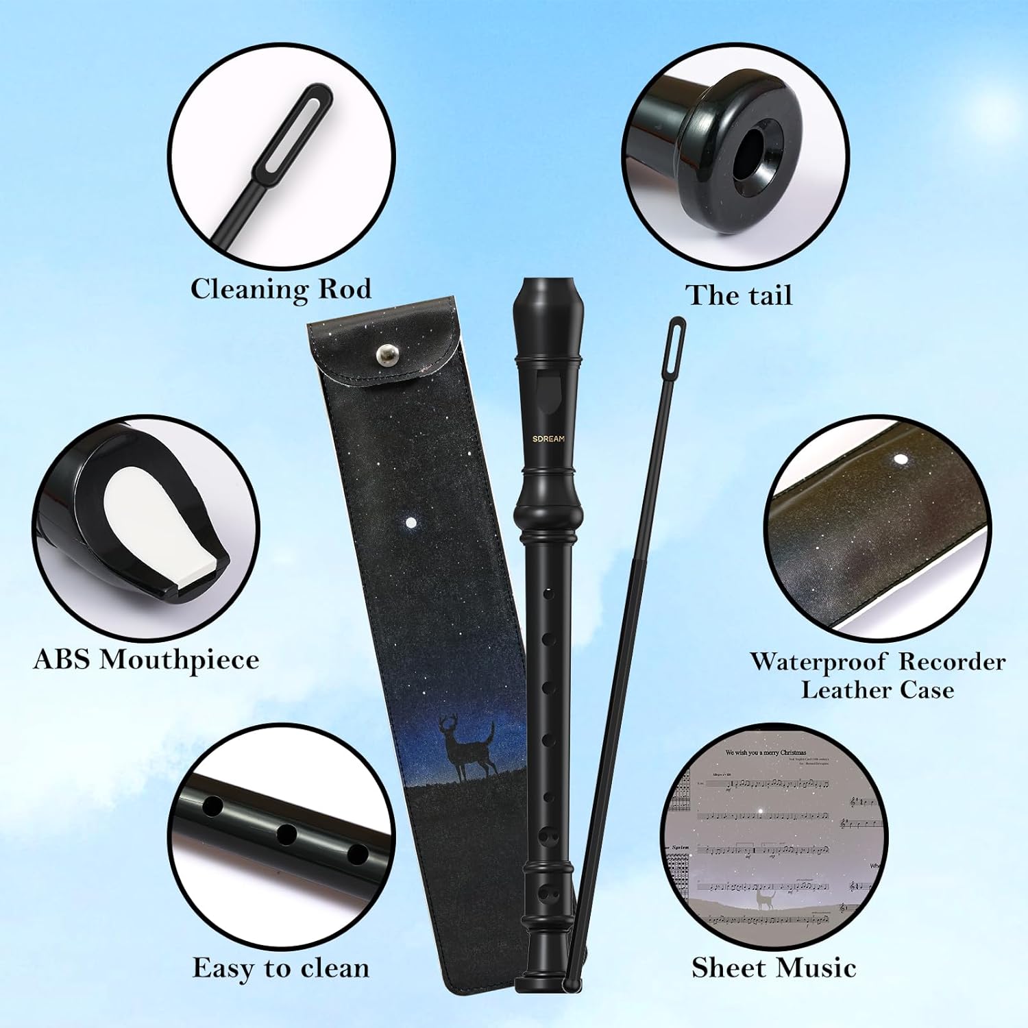 - 🎵Safe and Durable Material : The Soprano Recorder Instrument is Perfect for Kids, Beginners and Adults, featuring german fingering for easy learning. Includes A Cleaning Rod and Leather Bag for convenience. - grade ABS resin, it's non - toxic, lightweight for easy portability, highly hard and waterproof, making it suitable and safe for everyone, including teachers, students, and music enthusiasts.