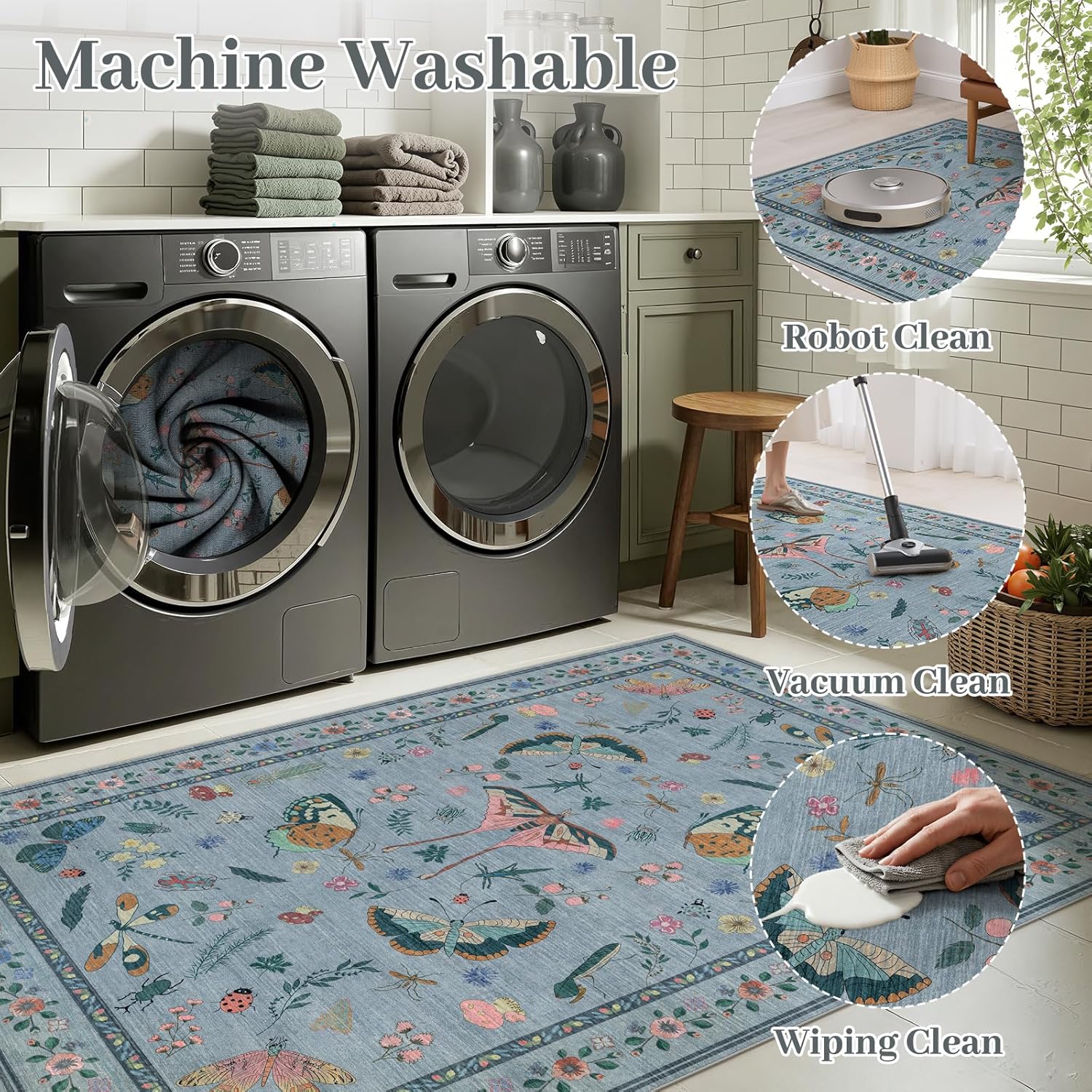 - Machine Washable & Stain Resistant: Our 3x5 Washable Rug resists stains and shedding. Wipe away spills, pet accidents, or baby messes instantly, or toss the entire rug in the washing machine for deep cleaning. Ideal for high-traffic areas like living room
