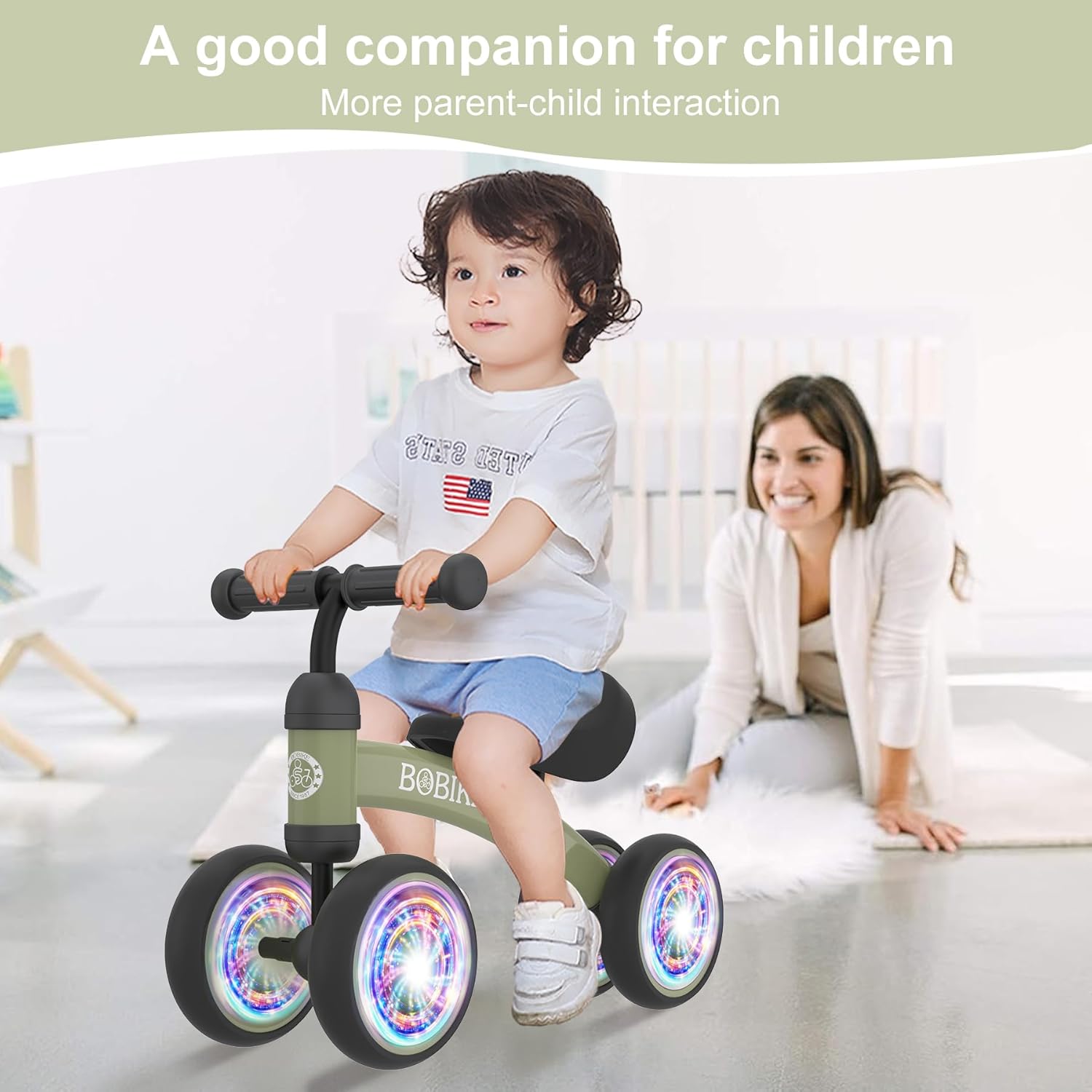 Baby Balance Bike Toys for 12-36 Months Kids Toy Boy and Girls Gifts Toddler Best First Birthday Gift Children Walker No Pedal Infant 4 Wheels Bicycle (Colorful, Deep Green-Light)
