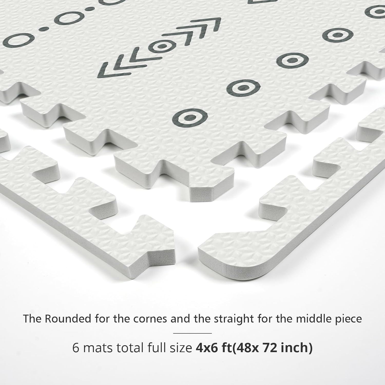 - Interlocking Foam Tiles: Use six 2ft by 2ft foam floor tiles to combine to create a total size of 4ft x 6ft baby play mats for floor. Suitable for baby crawling and tummy time exercise
