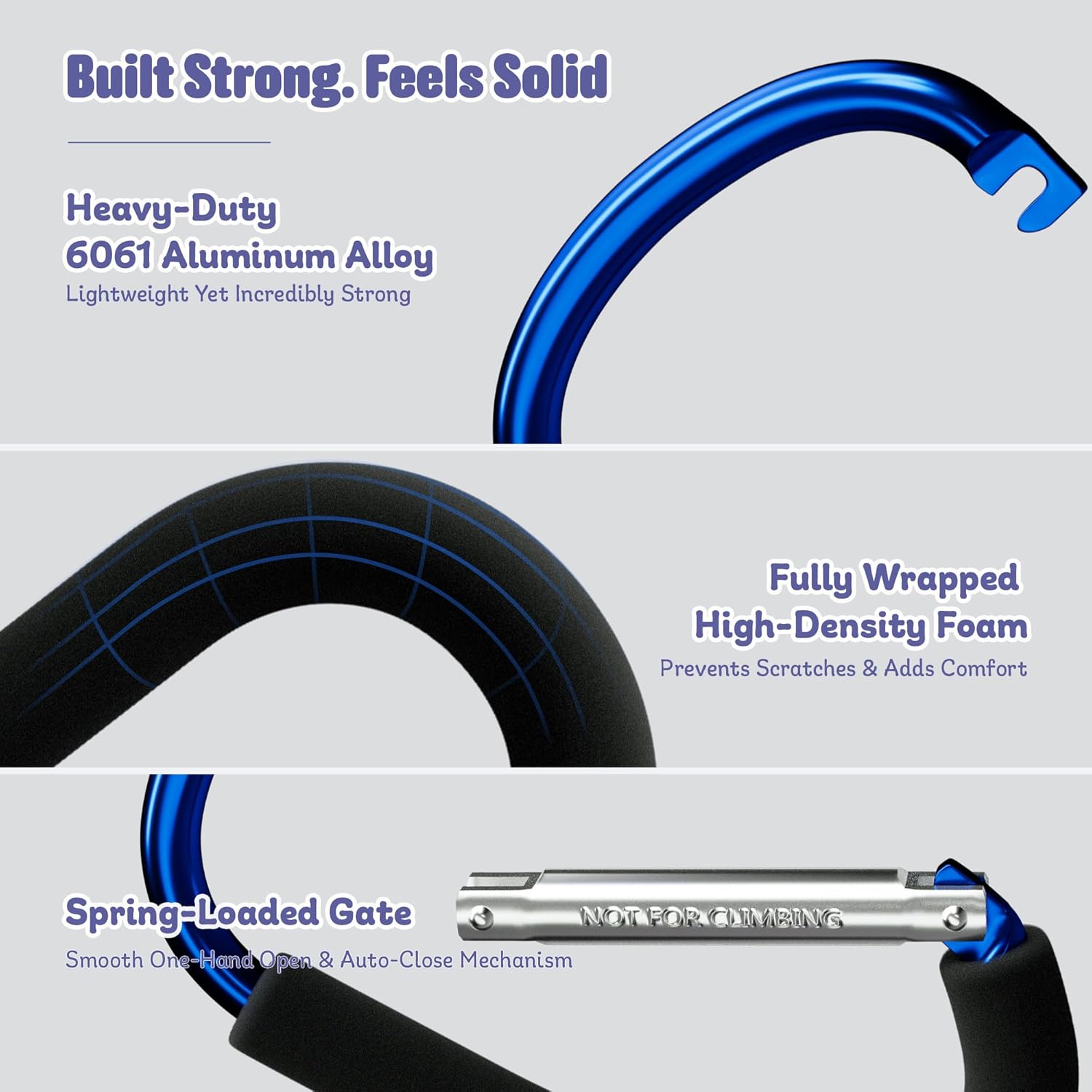 - Full Foam Handle Protects Bags: Featuring a soft foam handle, the stroller hook cushions diaper bags, purses, and backpacks, preventing scratches or damage from metal contact. A perfect stroller accessory to keep belongings safe during outings