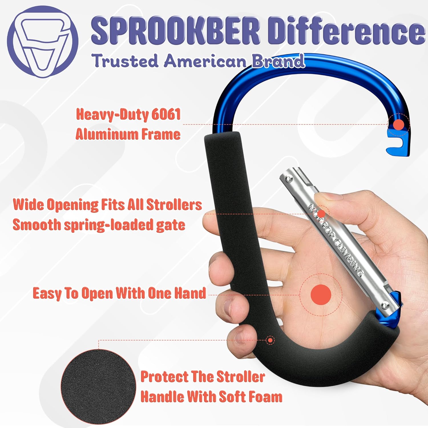 sprookber 6.7 Inch Large Stroller Hooks for Diaper Bags & Purses, Heavy Duty Mommy Hooks for Shopping, Grocery, Backpack – Baby Stroller Accessories, Set of 2 (Bule)