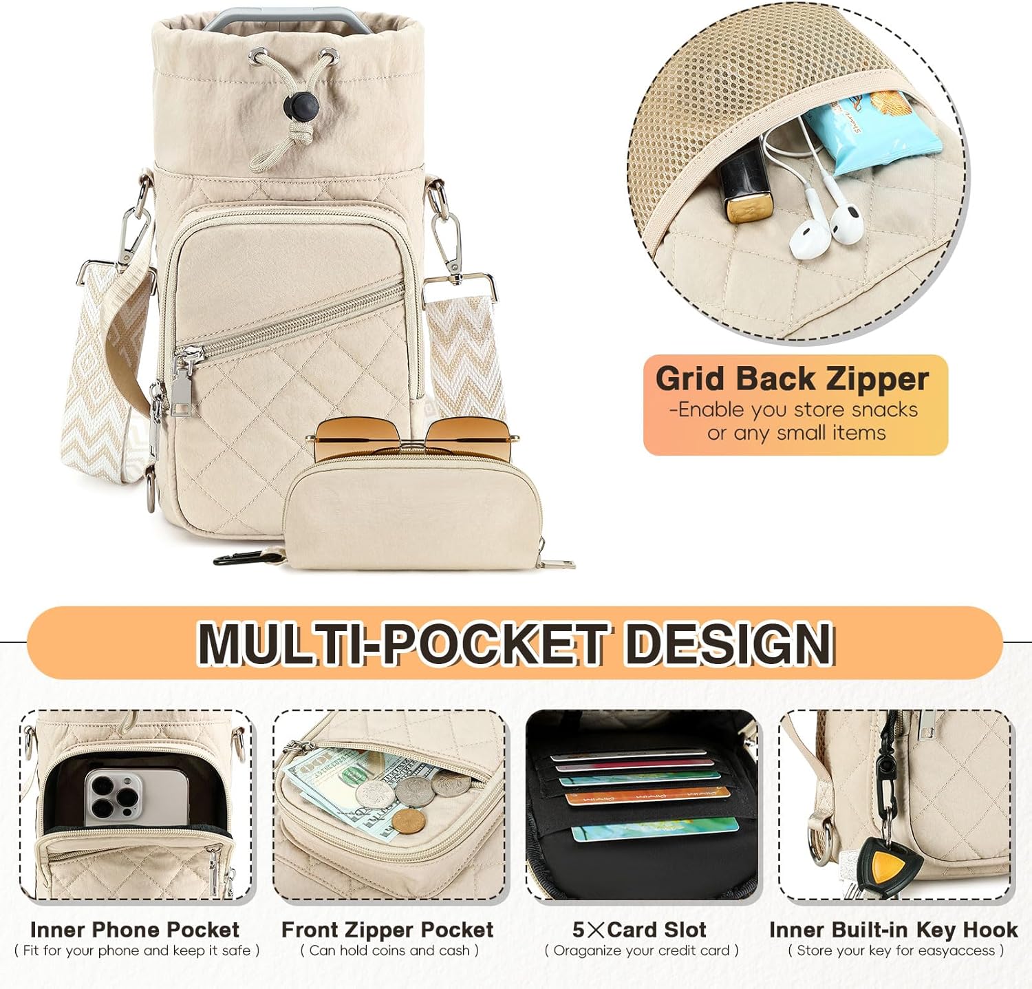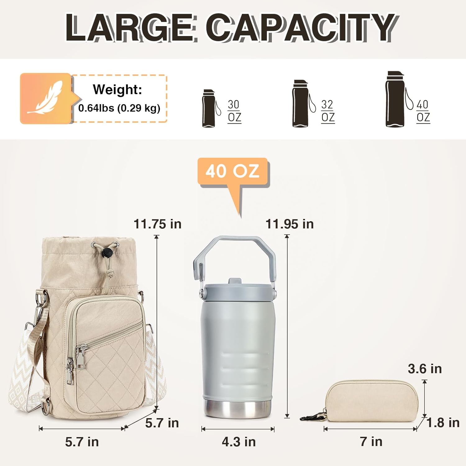 - 【Unique Gift & Widely Applicable】This stylish cross-body water bottle bag is suitable for walking, yoga, fitness, cycling, camping, hiking, commuting, as well as outings to the beach, gym, or sporting events. Designed with a convenient strap, this water bottle carrier with strap makes a thoughtful and practical gift for Stanley enthusiasts on occasions such as Valentine’s Day, birthdays, or Christmas. Hot popular colors for you to choose, perfect match with your stanley cup.