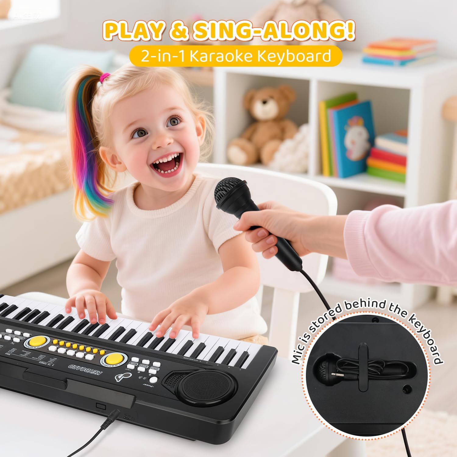 Kids Piano Keyboard Toy with Mic – 49 Keys Portable Electronic Piano for 3 4 5 6 7 Girls Boys Beginners Birthday Xmas Gifts, Black