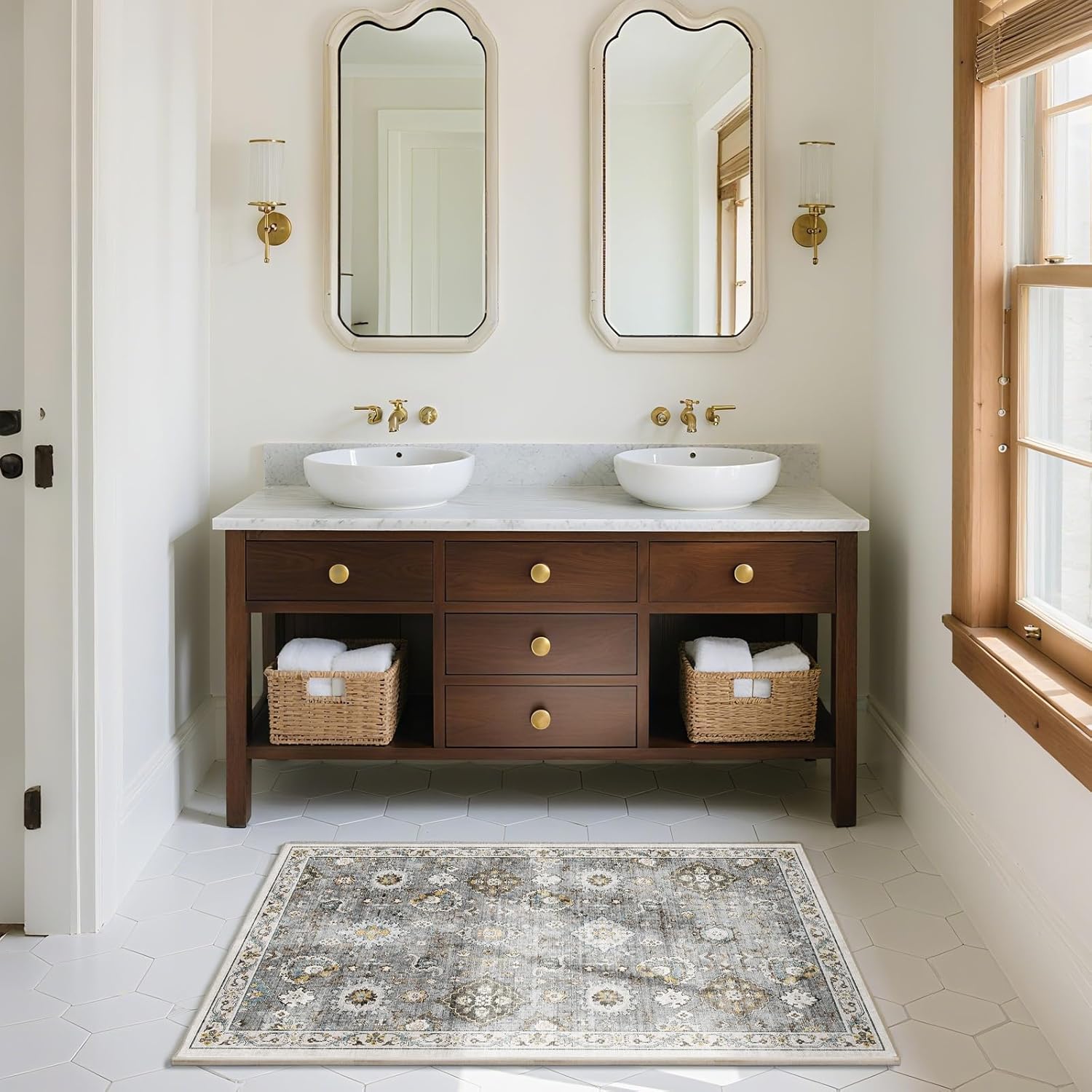 Machine Washable Small Rugs for Entryway: Door Mat Indoor Entrance 2x3 Boho Throw Rug Stain Resistant Non-Slip Low Pile Soft Carpets for Kitchen Front Door Indoor Entrance Entry Bedroom Nursery