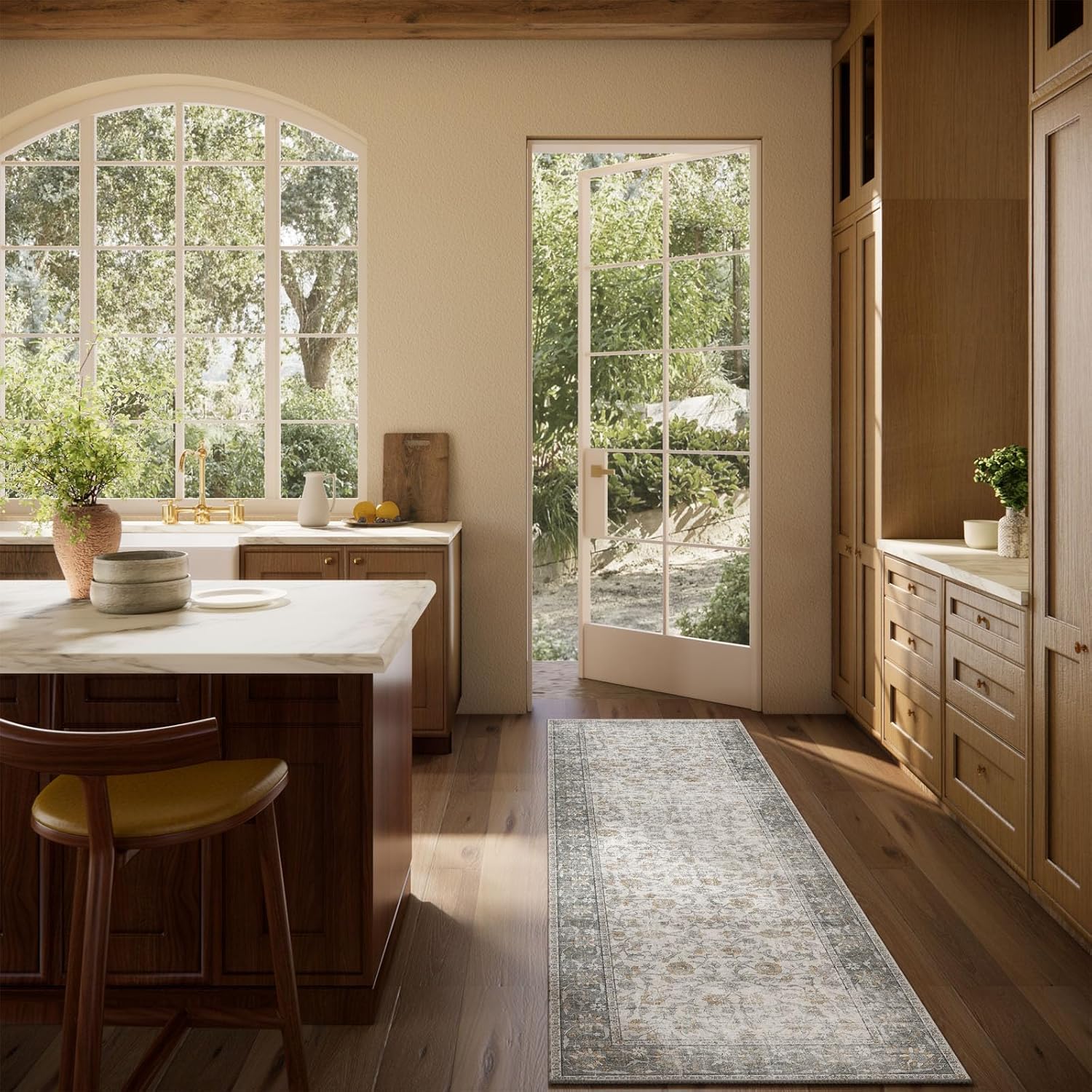 Washable Kitchen Rug Runners for Hallways: 2'x6' Bedroom Rug Non Slip Low-Pile Stain Resistant Soft Indoor Floor Carpet Runner for Indoor Entryway Hallways Kitchen Laundry Room Beside Farmhouseb