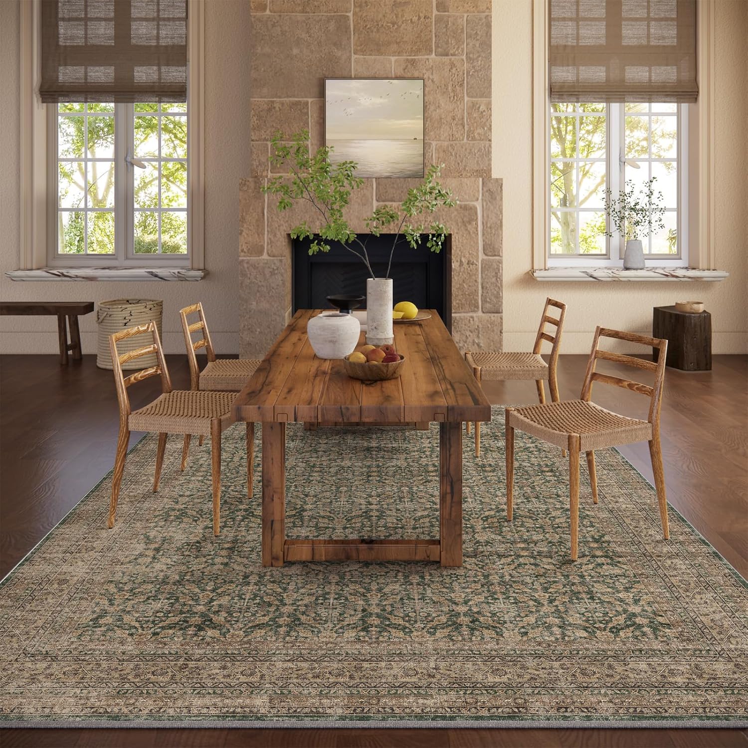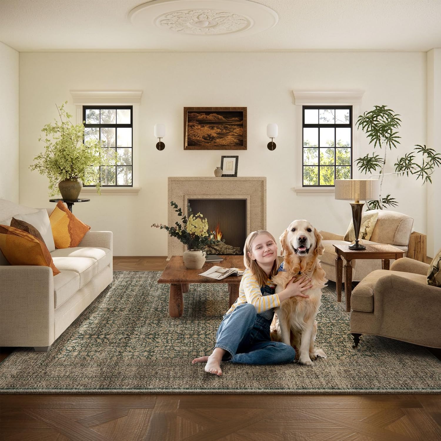 Machine Washable Rugs for Living Room: 5x7 Area Rugs Boho Vintage Rugs Stain Resistant Non Slip Low Pile Soft Lightweight Carpet for Bedroom Kitchen Dining Room Nursery Kids Room Farmhouse