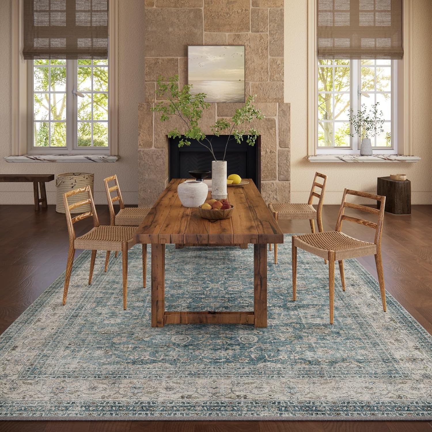 Machine Washable Living Room Rug: 5x7 Area Rugs for Bedroom Vintage Stain Resistant Non Slip Low Pile Lightweight Boho Carpet for Kitchen Dining Room Farmhouse Kids Room Nursery
